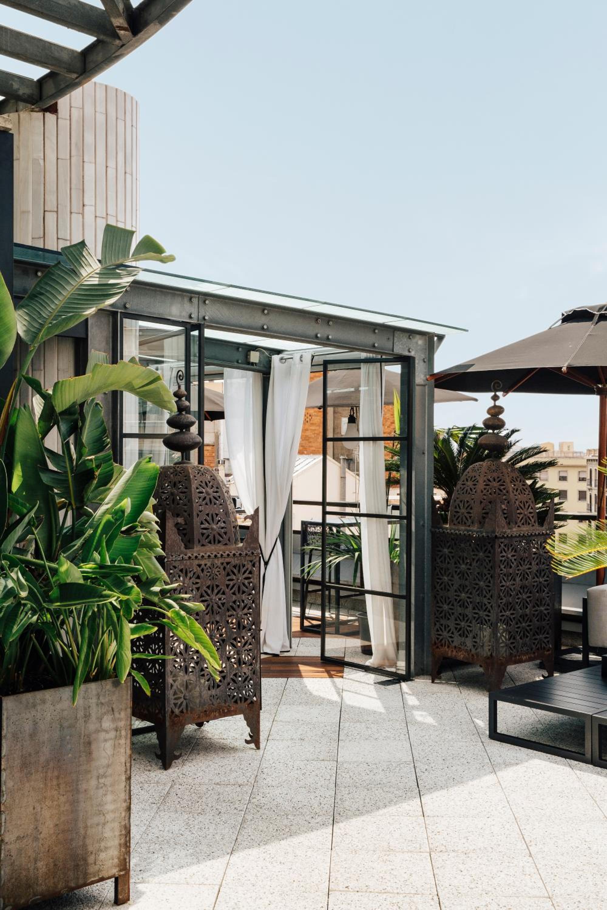 Gut gelegen, Nähe der Gaudi Häuser am Paseo de Gracia. Die Dachterasse klein und fein, eine Oase in der Hektik des Massentourismus. Der innere Courtyard mit Aufzug, Glaswände und Pflanzen sehr attraktiv. Die Kunstgegenstände haben nicht gereizt, weil Barcelona selber schon so viel zu bieten hat. Die Silvesternacht im Hotelrestaurant, oben auf dem Dach, war wunderbar. Das Essen hoch kreativ und die Stimmung mit den vielen Gängen super choreographiert. . Allgemein ist das Team da oben hervorragend.
