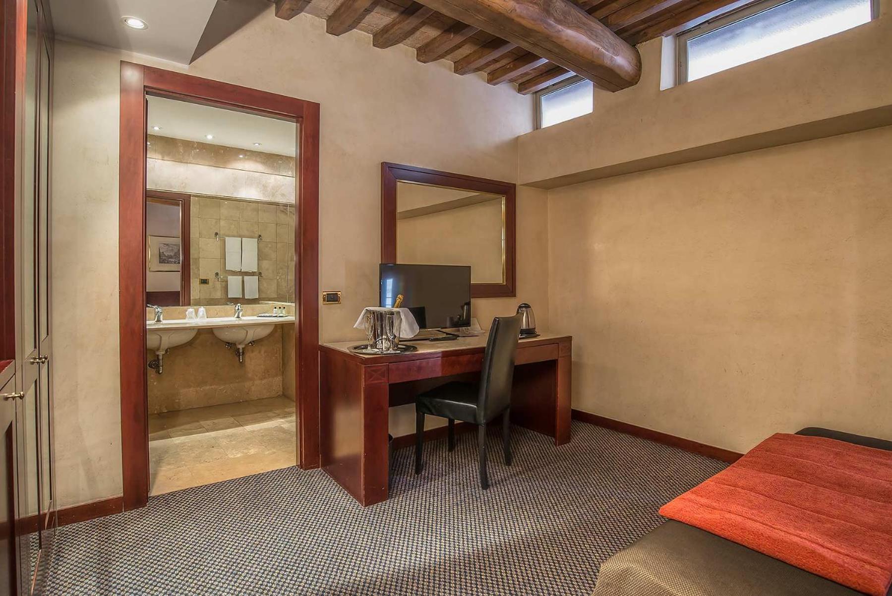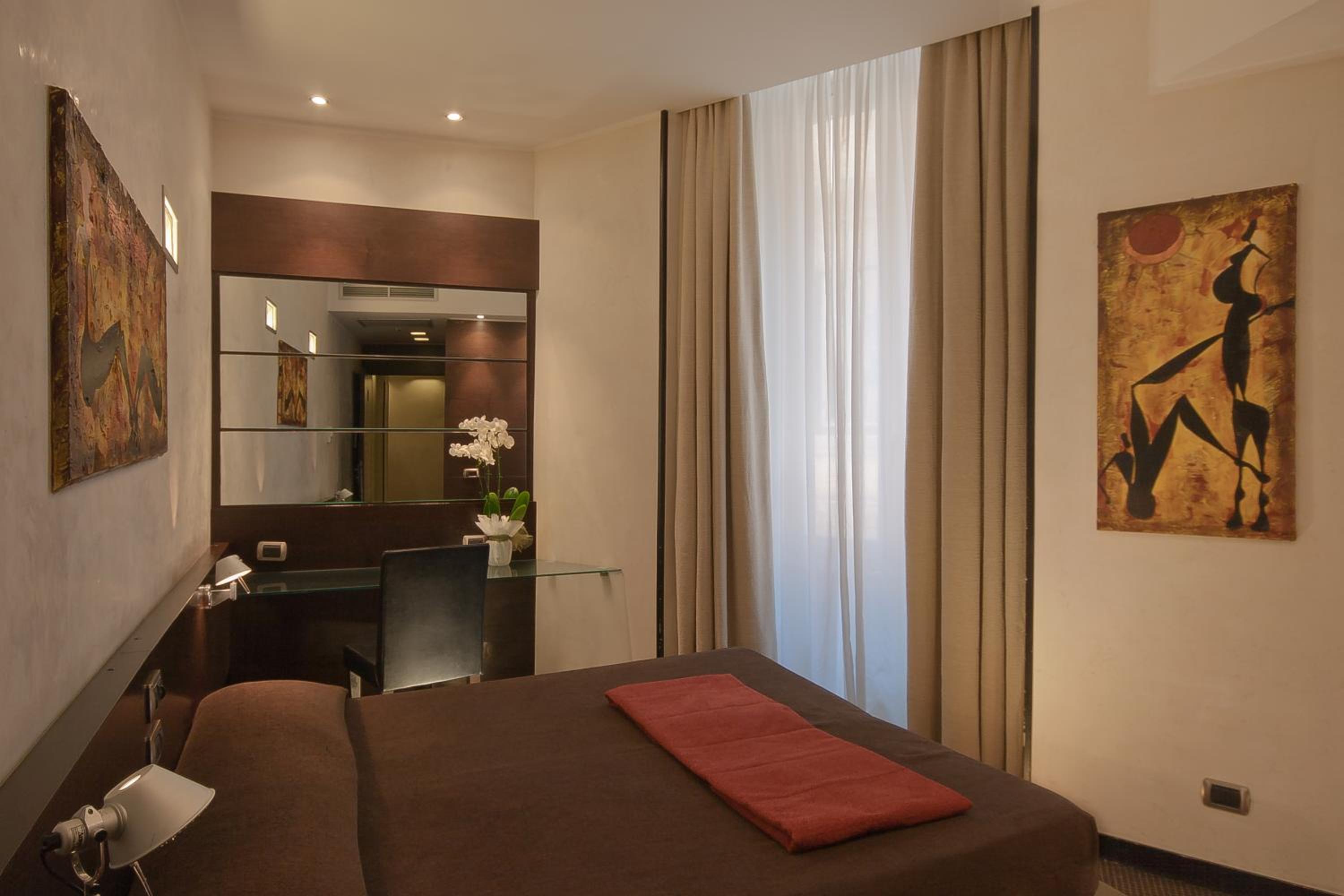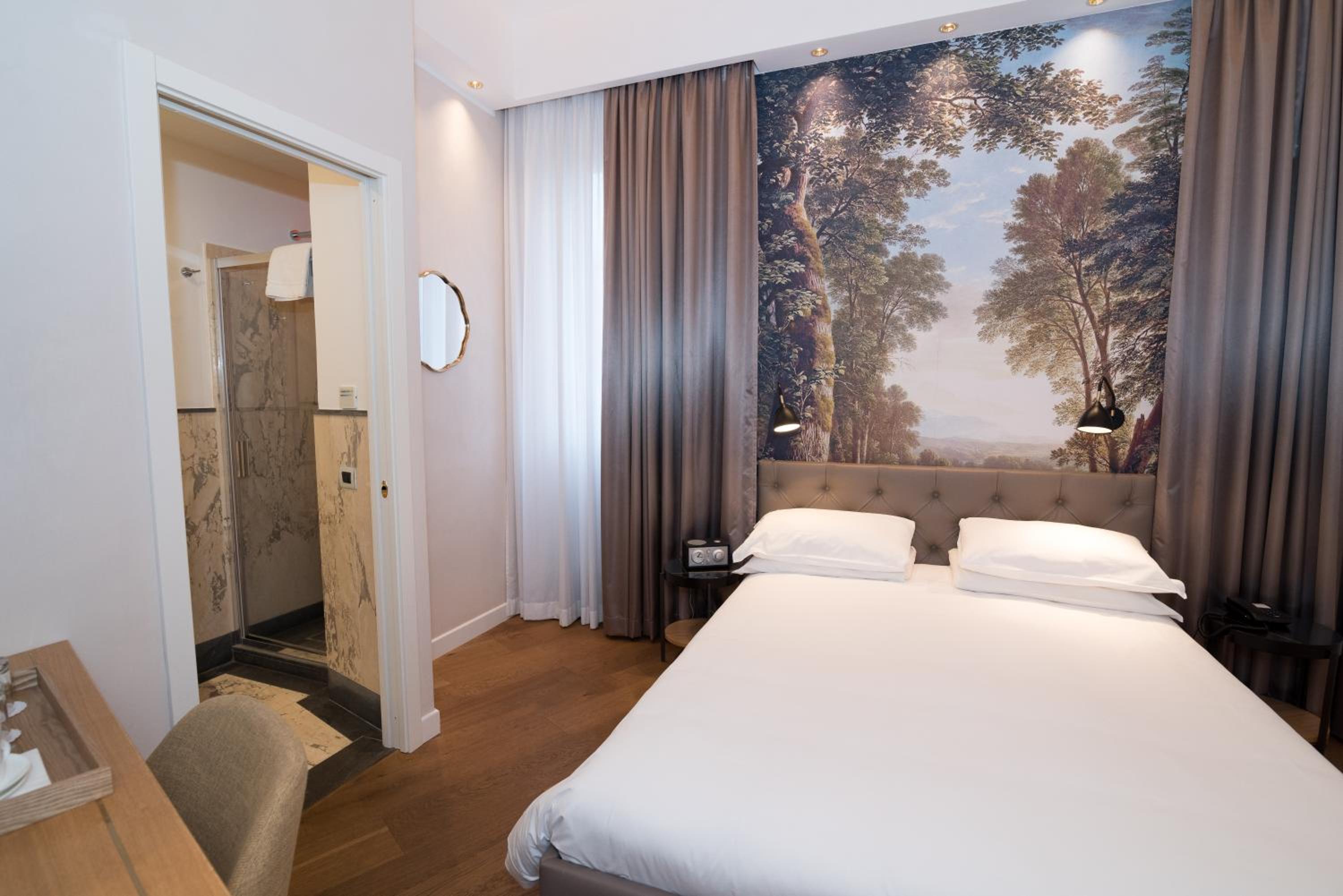 Hotel Accademia, steps from the Trevi Fountain, offers classic rooms and a buffet breakfast. Prime Location Just 5 minutes from Barberini Metro Station, explore Rome's historic center effortlessly. Elegant Rooms Experience luxury with design decorations and marble bathrooms in select rooms. Convenient Amenities Walking distance to the Spanish Steps and the Vatican, with easy access to public transport. Book now for an unforgettable stay in Rome!