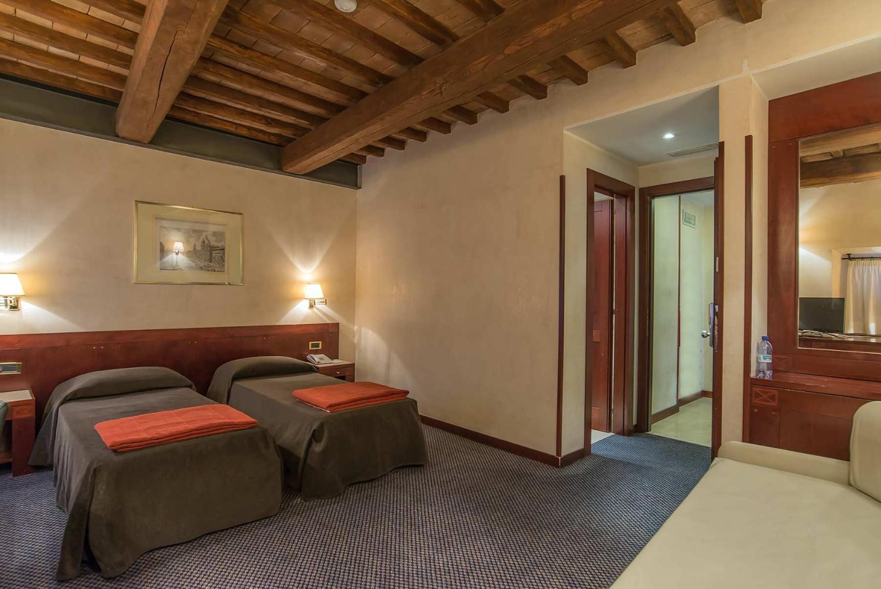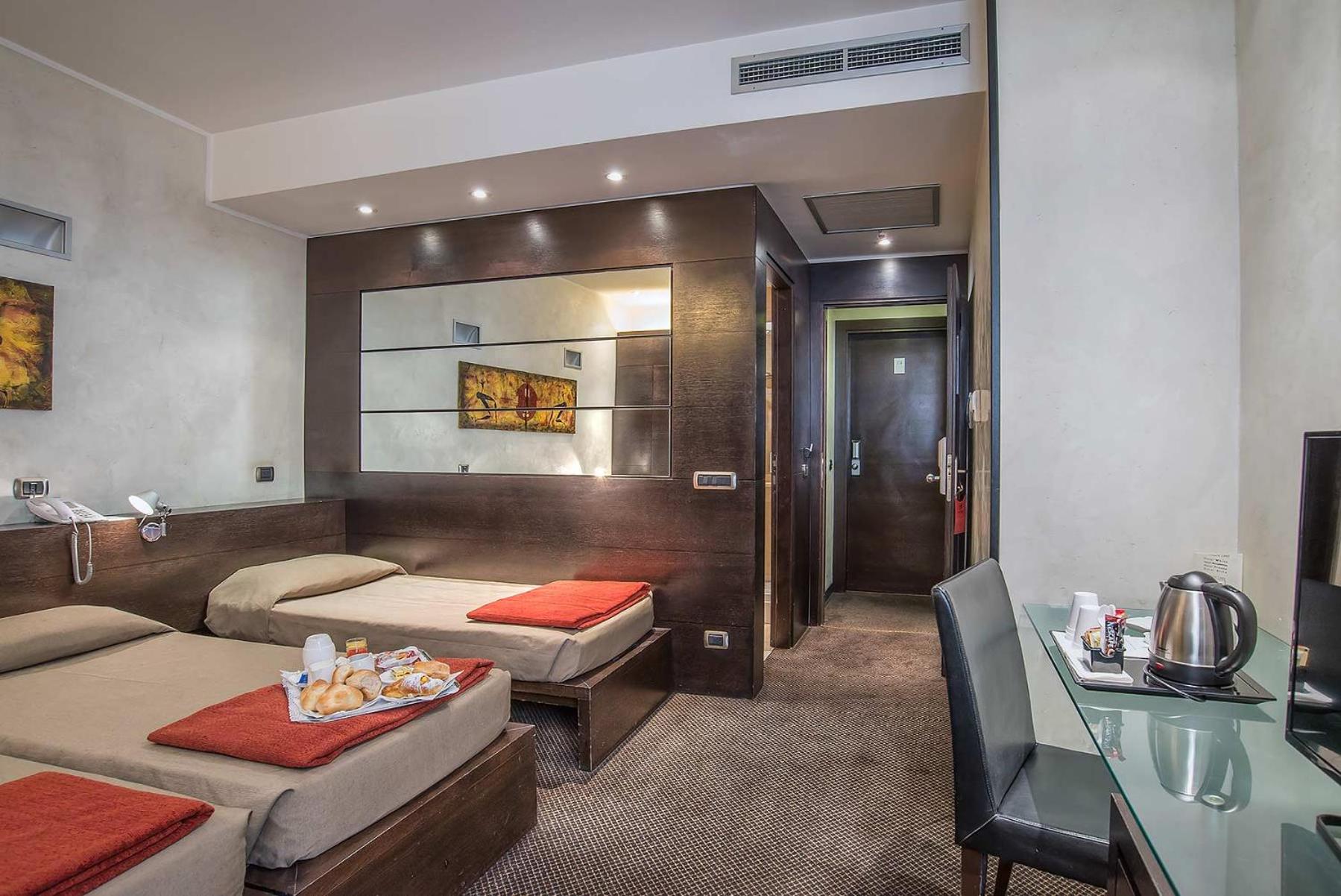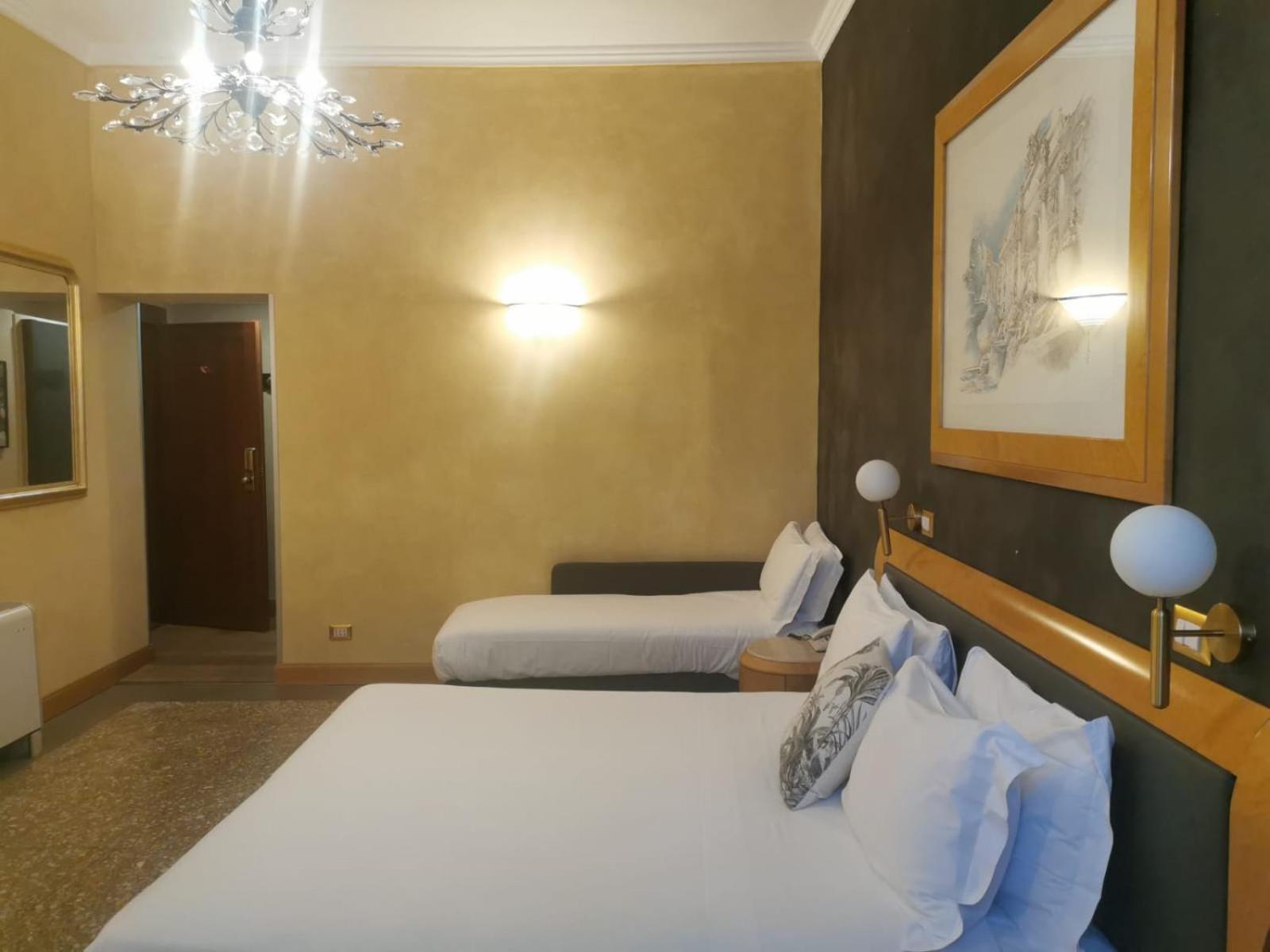 A localização do hotel é simplesmente perfeita, não dá 2 minutos andando até a Fontana de Trevi, a localização perfeita, perto de boas lojas, e bons lugares de alimentação, como KFC, Mc donalds, o quarto era um tamanho ótimo, estávamos em Quatro pessoas e 7 malas grandes e pequenas, coube todas as malas, cada um tinha sua cama e ficamos muito confortáveis, o banheiro era excelente, o café da manhã era bom, para nós brasileiros tinha pão, bolo, presunto e queijo, ovos e várias outras opções, o quarto era limpado todos os dias e todos os dias trocavam as nossas toalhas, mesmo sendo perto da Fontana e ter um grande fluxo, o barulho não foi um problema, não escutávamos barulho algum.