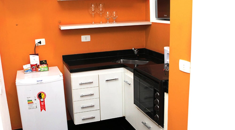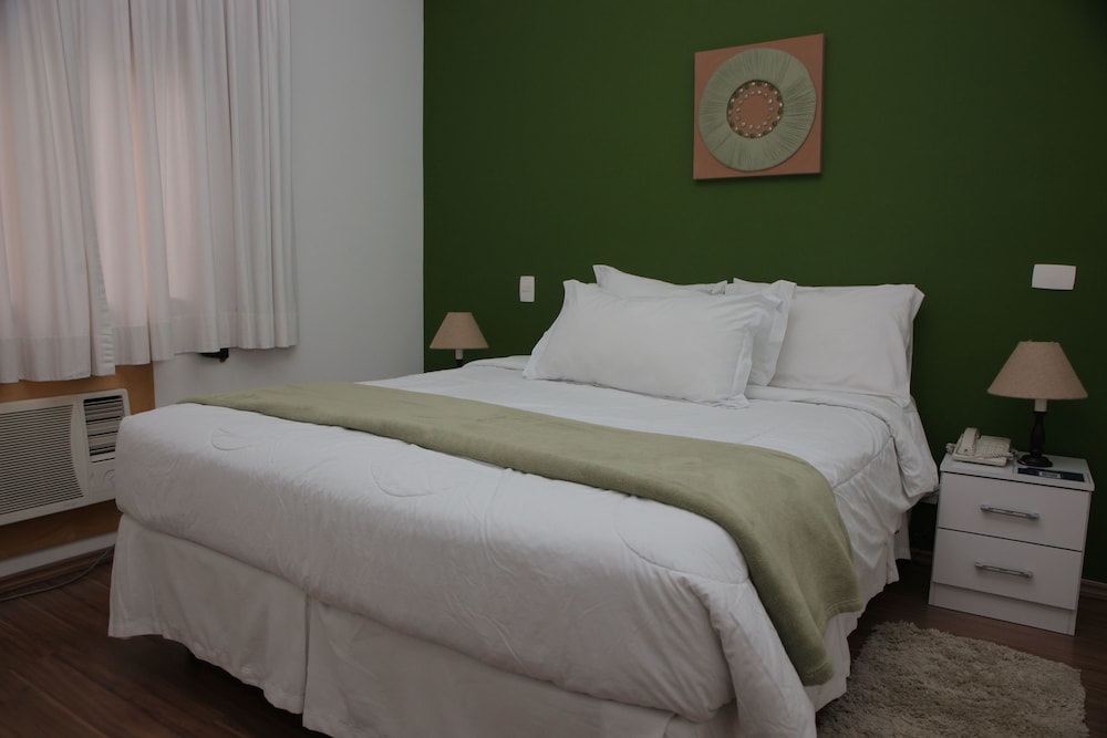 Quarto muito amplo, na verdade é um apartamento completo, com sala, cozinha, quarto e banheiro. Ainda tem uma sacada. Todos os cômodos são amplos e confortáveis. A estrutura é moderna. Limpeza diária. Não tem café, mas o hotel avisa isso de antemão. Ótima localização. Custo-benefício excelente, sempre ficamos aqui quando viajamos a São Paulo.