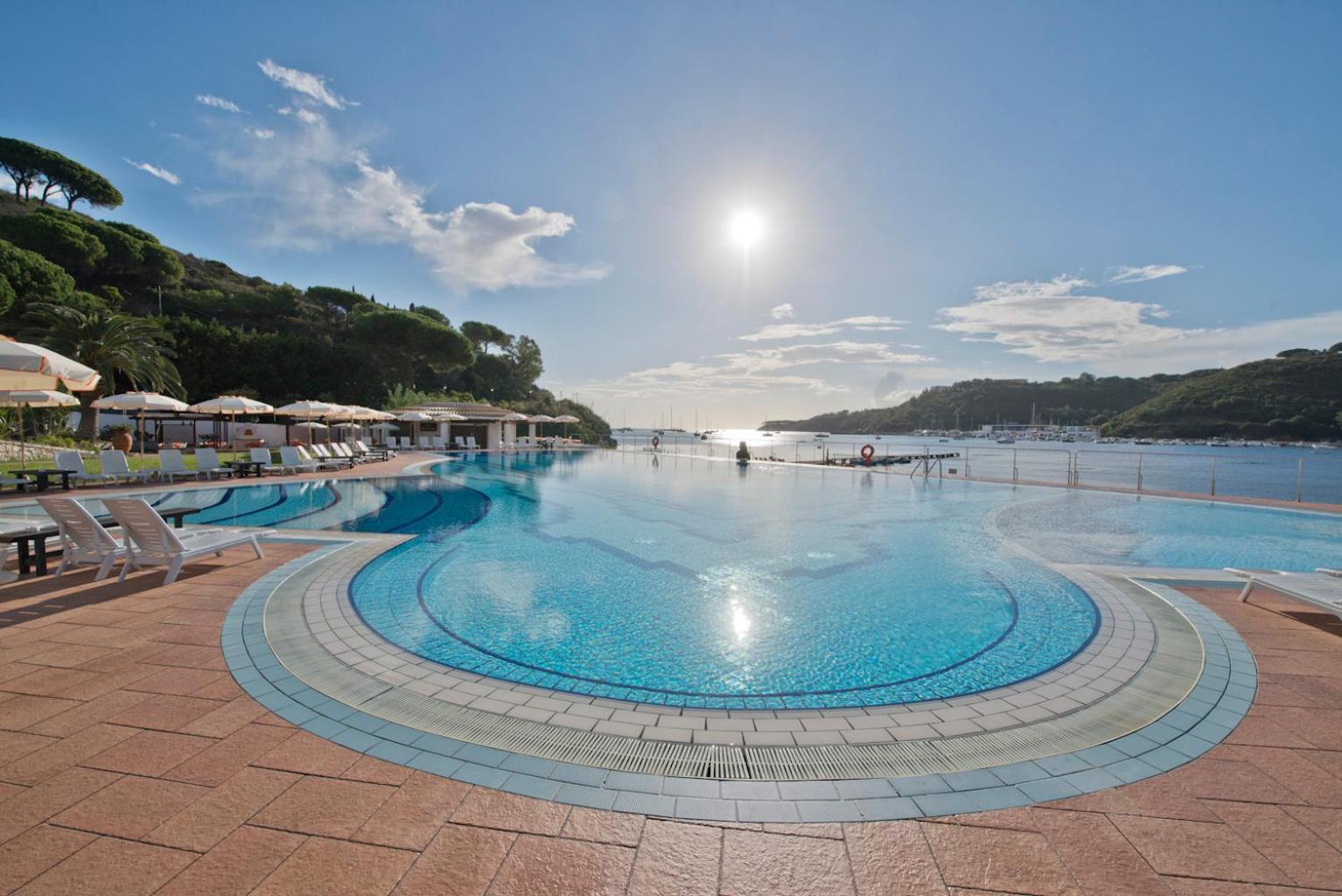 Piscina molto bella e pulitissima alimentata con acqua di mare, ha varie altezze e offre anche spazio per idromassaggio, colazione abbondante sia dolce che salata e mare.....che dire sul mare siamo all'Elba ed è strepitoso. Le ragazze dell'animazione sono molto brave e coinvolgenti oltre ad essere molto gentili. C'è costantemente la sorveglianza per dare ulteriore sicurezza agli ospiti. La tavola calda e bar bordo piscina è molto ben rifornito e prezzi ottimi. Ottimo giudizio diamo anche sull'accoglienza alla reception, personale molto disponibile e attento oltre che gentile e sorridente (che non guasta mai)
