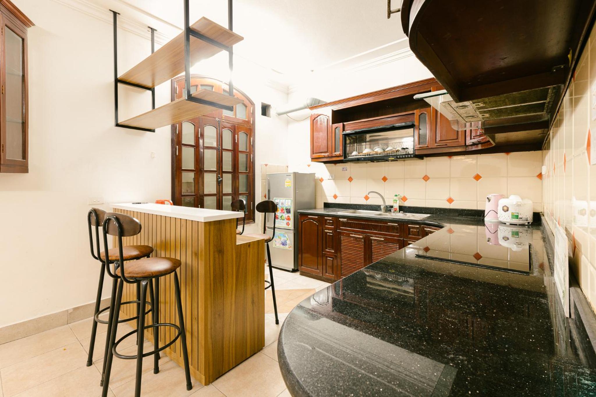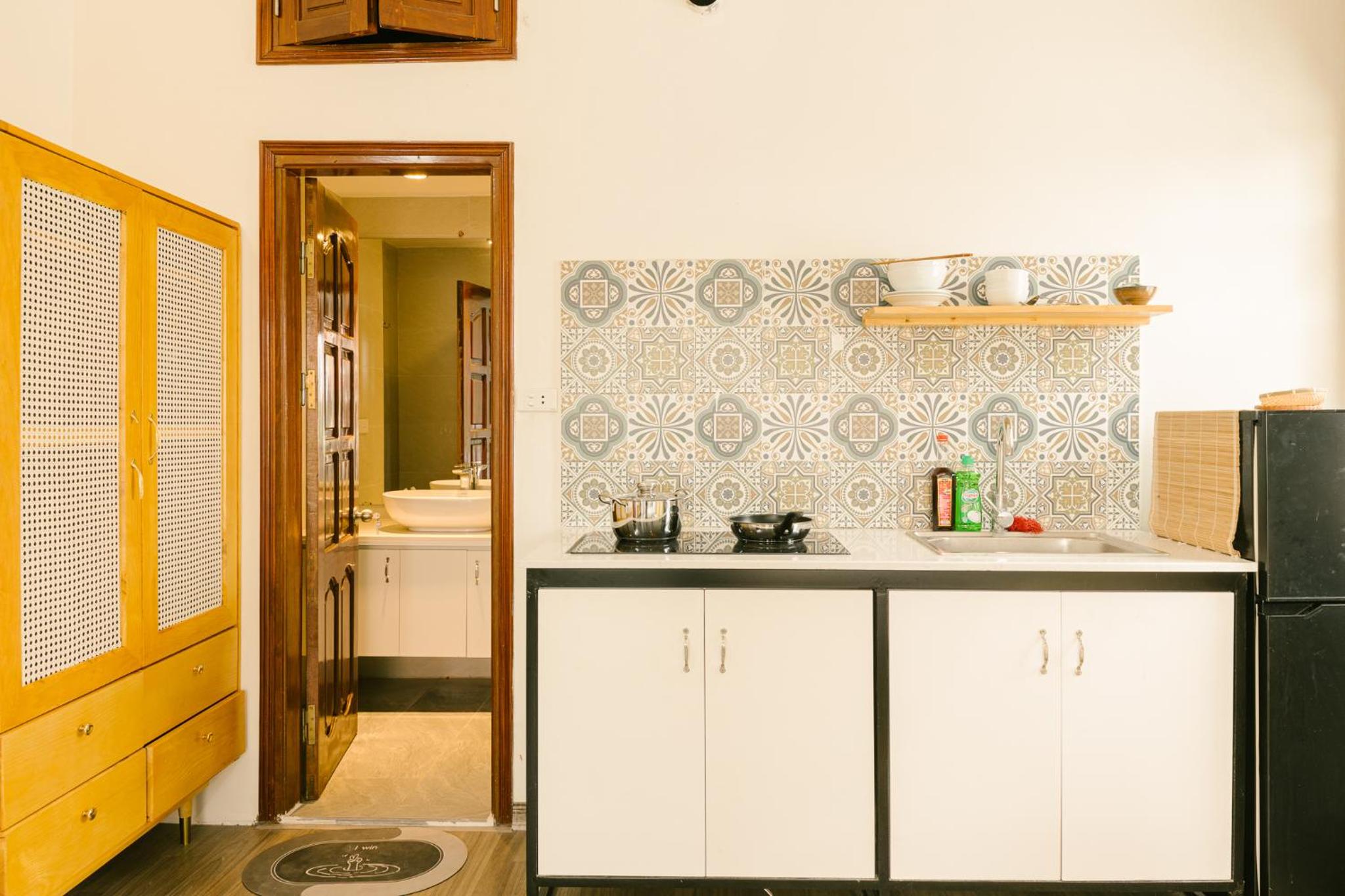 Nhân viên nhiệt tình luôn chào hỏi. Chỗ ở tạo cảm giác như ở nhà, rất thoải mái. Thi thoảng mình có thể dùng bếp để nấu ăn sáng. Tóm lại là khá tiện lợi. Điểm cộng là khu này yên tĩnh, dễ ngủ hihi