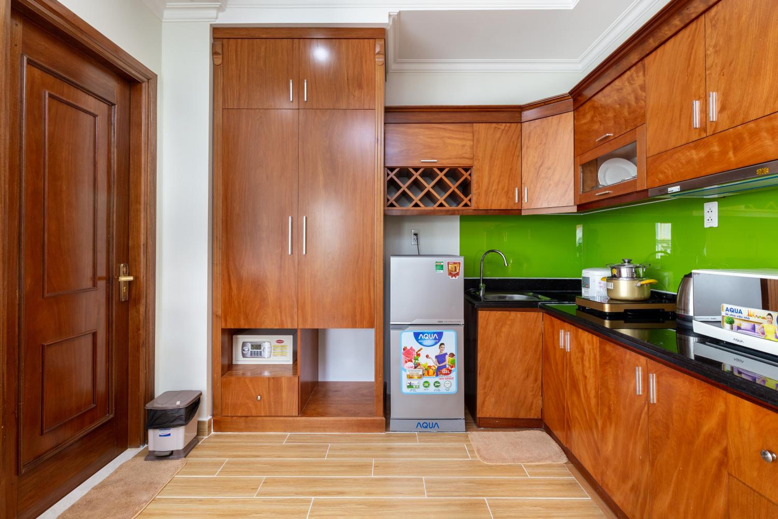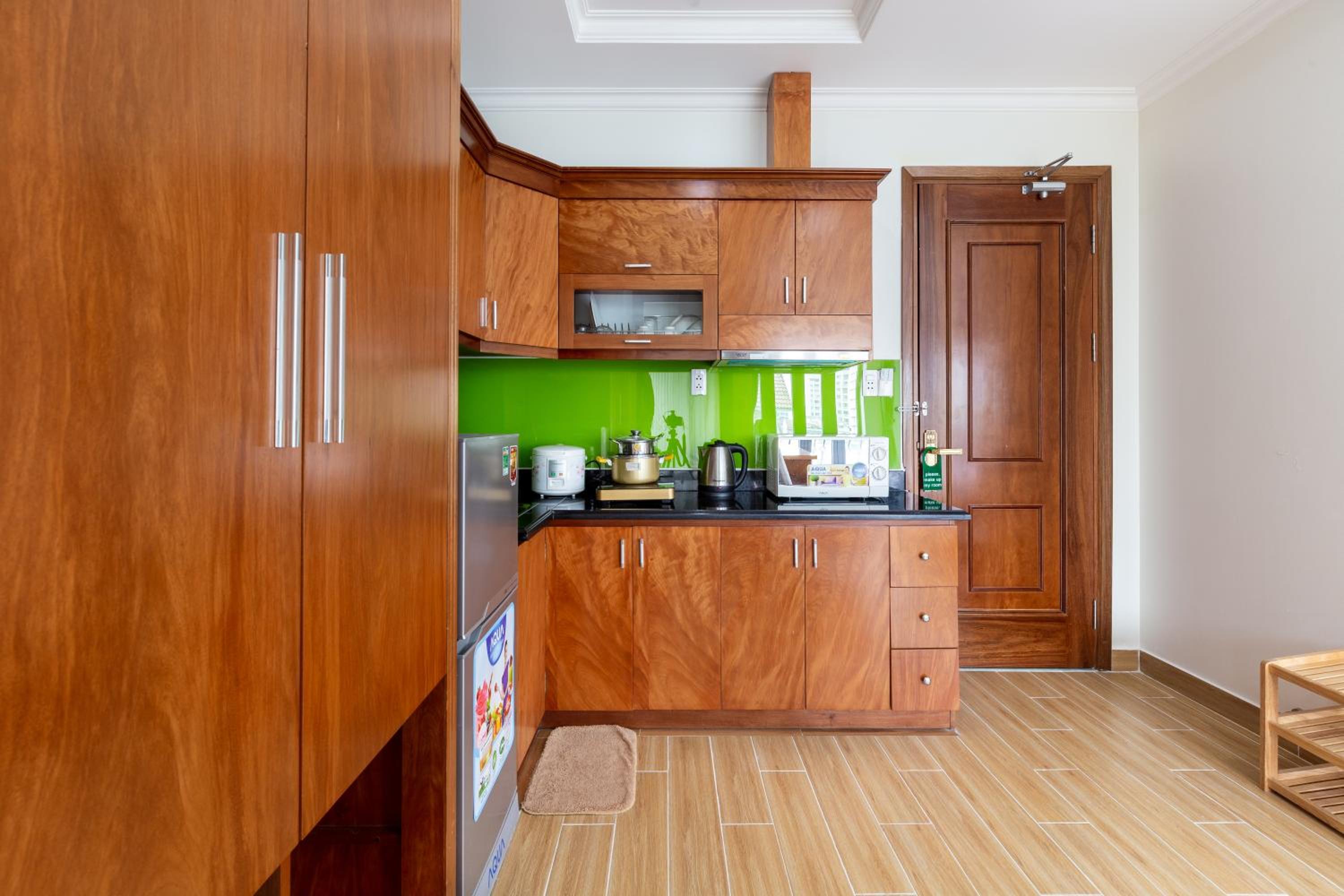 The room was upgraded for free. There was no shortage of kitchen, microwave, refrigerator, cooking utensils, etc., and there was also a razor and toothpaste.