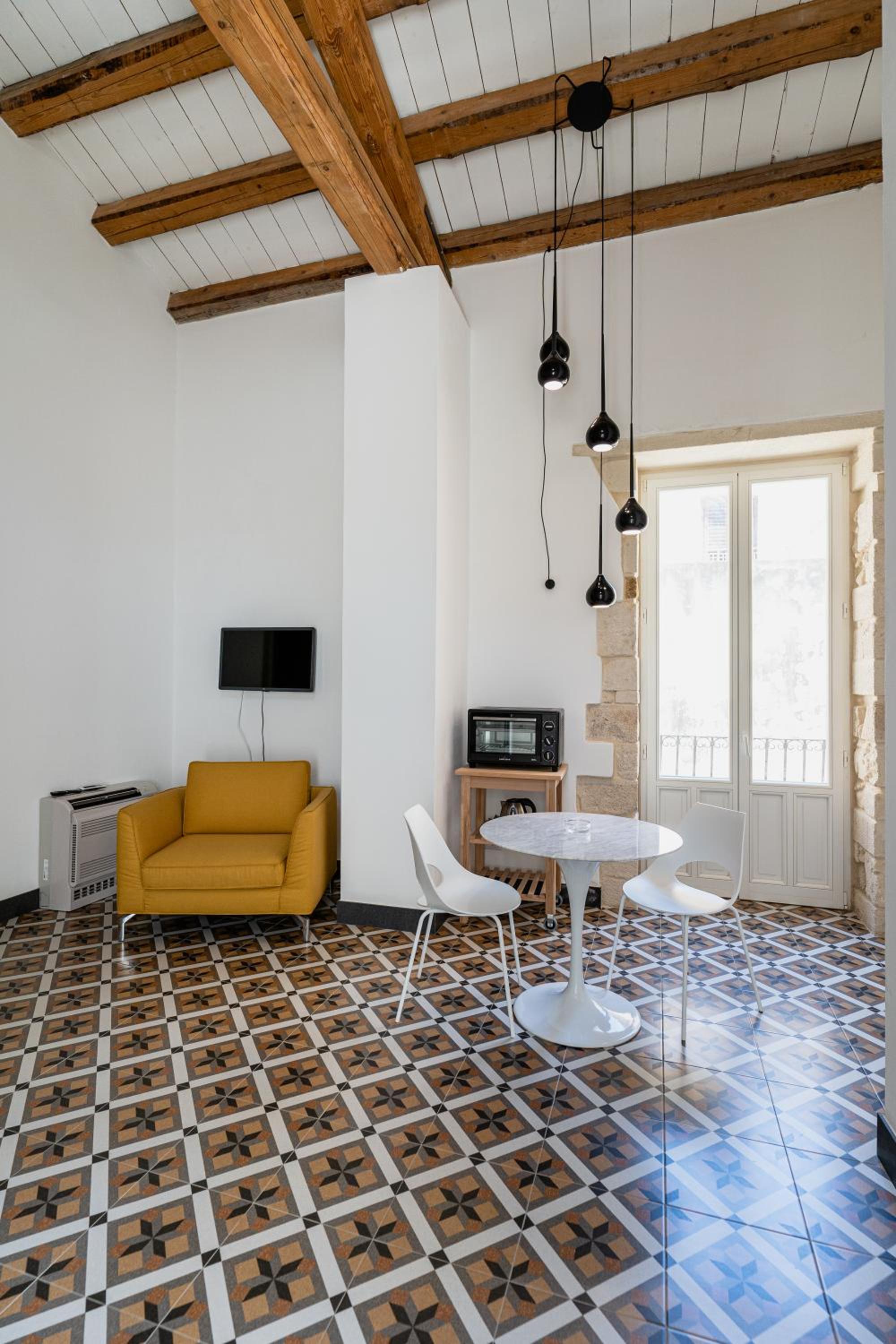 Large apartment, high ceilings, beautifully furnished and spotlessly clean. Loved the courtyard space with comfy chairs for reading and drinking coffee! Espresso machine was also much appreciated and there was a large jacuzzi. Air conditioning very good. Plenty of storage space for clothes etc. and a fridge and kettle, although no cooking or washing up facilities. Staff replaced used cups/glasses. The staff were lovely and very helpful, booking restaurants / suggesting places to visit etc and the apartment location is excellent, close to shops including a small supermarket which was open in the evenings. The entrance to the property is in an alleyway not accessible by car/taxi, but we liked the fact that it was away from the busy street, making it peaceful sitting in the courtyard.