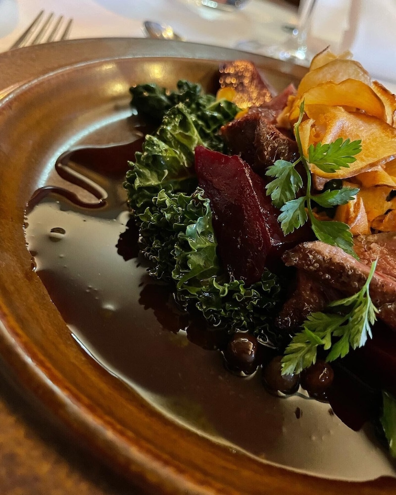 Välkomnande och behagligt ställe, fantastiskt god mat och en duktig sommelier som såg till att vi fick passande dryck. Glass med smak av gran, perfekta avslutet på en tre-rätters middag. Omtänksam och mysig personal.