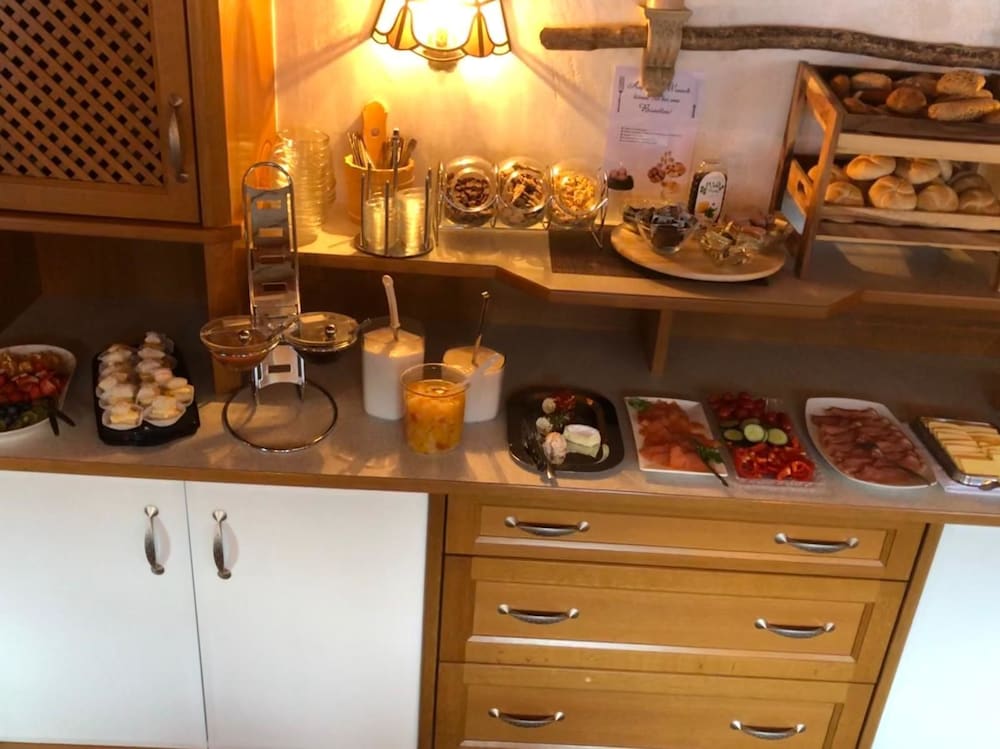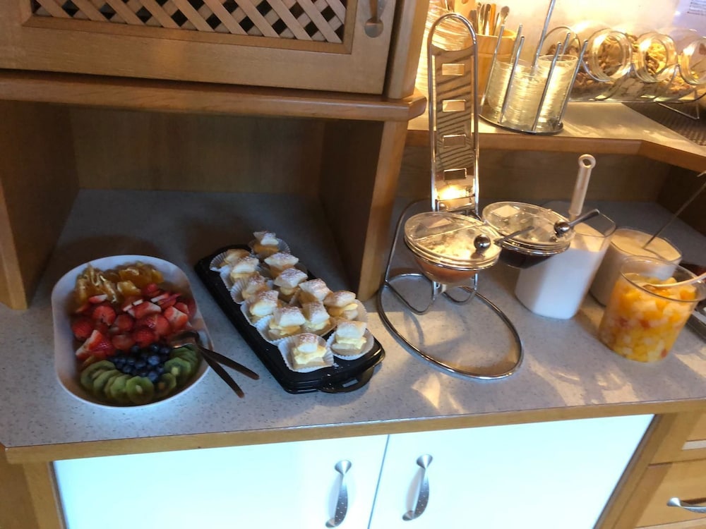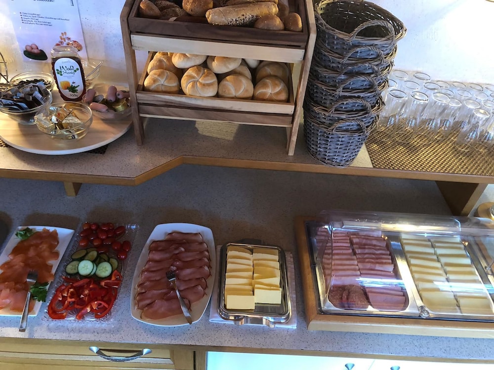 sehr vielfältiges Frühstücksbuffett, Eierspeisen und Heißgetränke werden auf Wunsch frisch zubereitet, es lies keine Wünsche offen