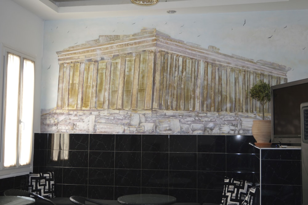 Super par rapport au métro à 2 pas . Hôtel un peu brillant en fait on entend tout. Petit dej grec tomate concombre fromage frais œuf dur chaud pain confiture a l orange et jus d orange.A 2 pas boulangerie avec du bon pain de vrai croissant pur beurre vrai café pour 2 pers 5 à 6 euros et en plus chanson française. Sans enfants hôtel bien et niveau prix