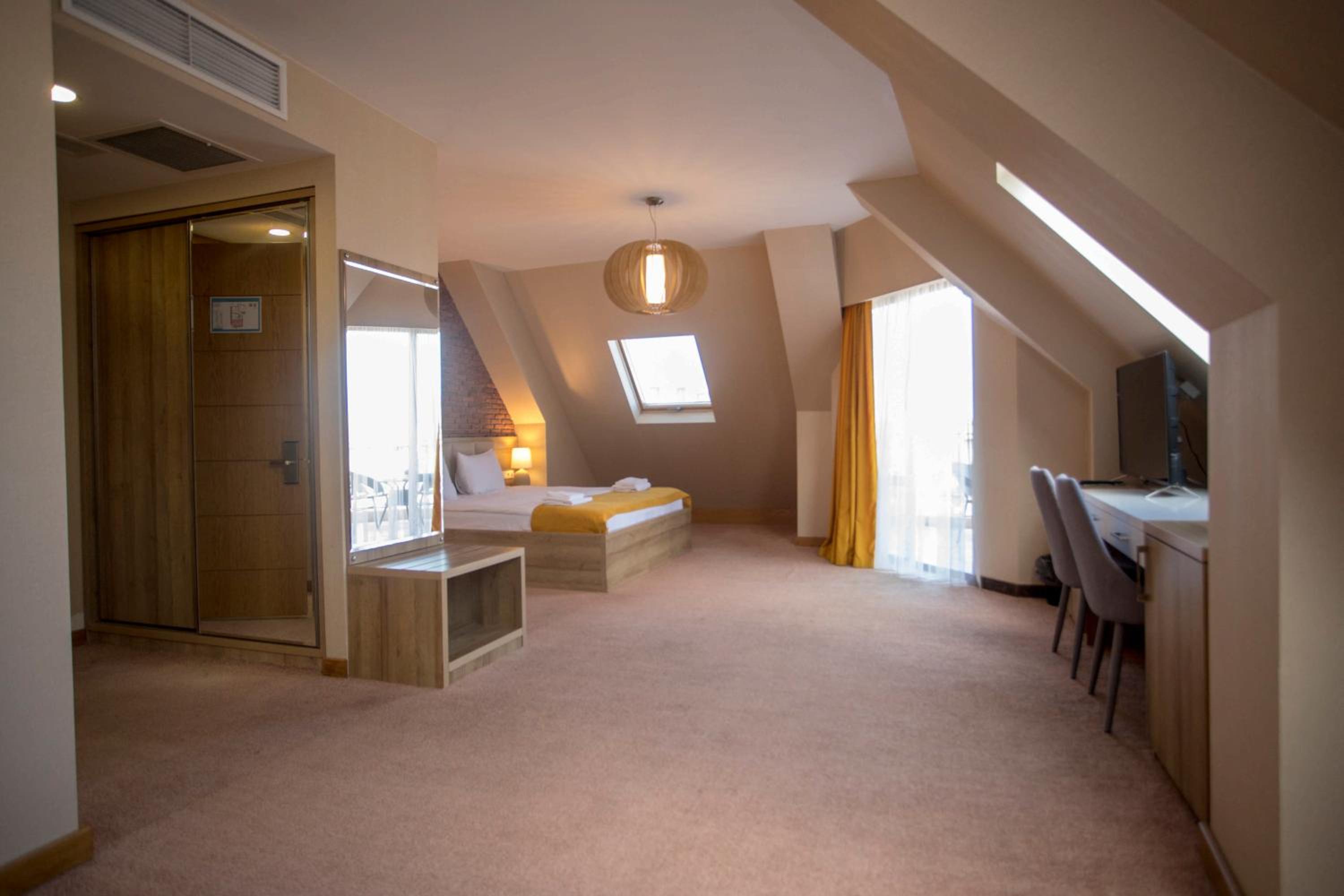 The room itself is very modern and big, equipped with everything (tea, coffee, shower gels, shampoo, etc.).