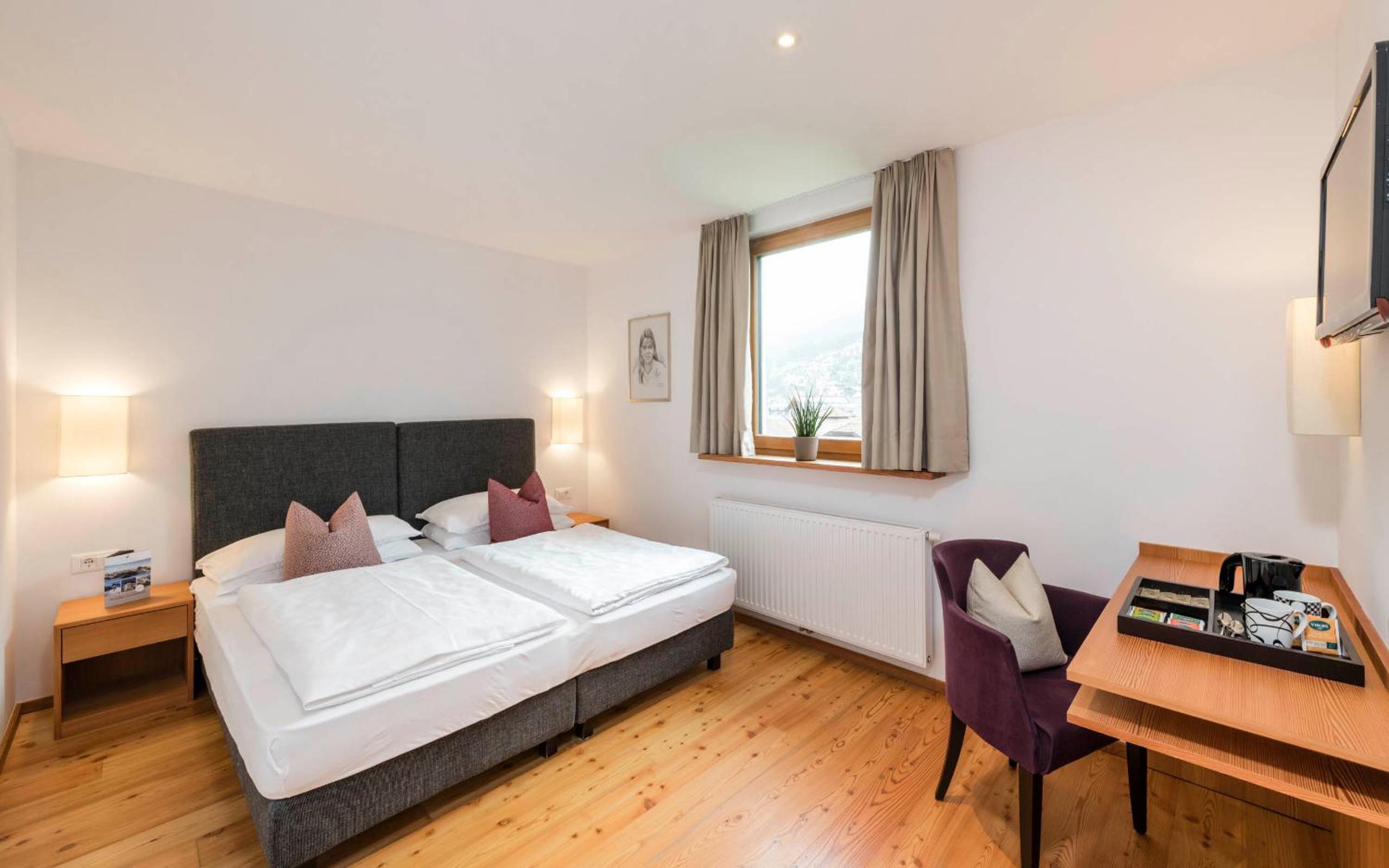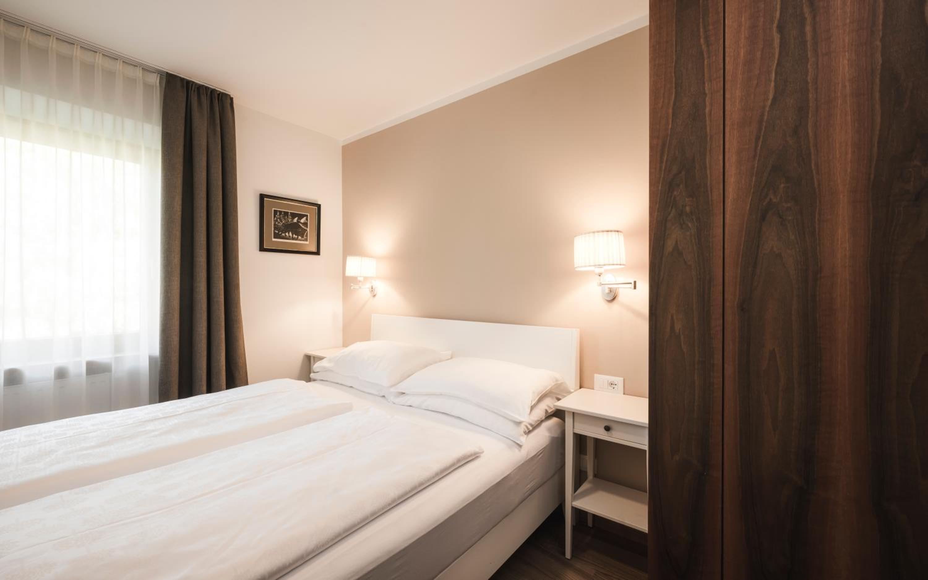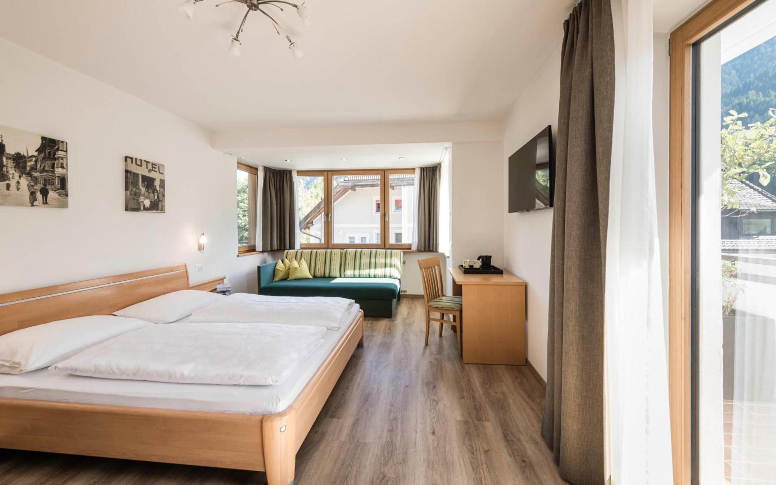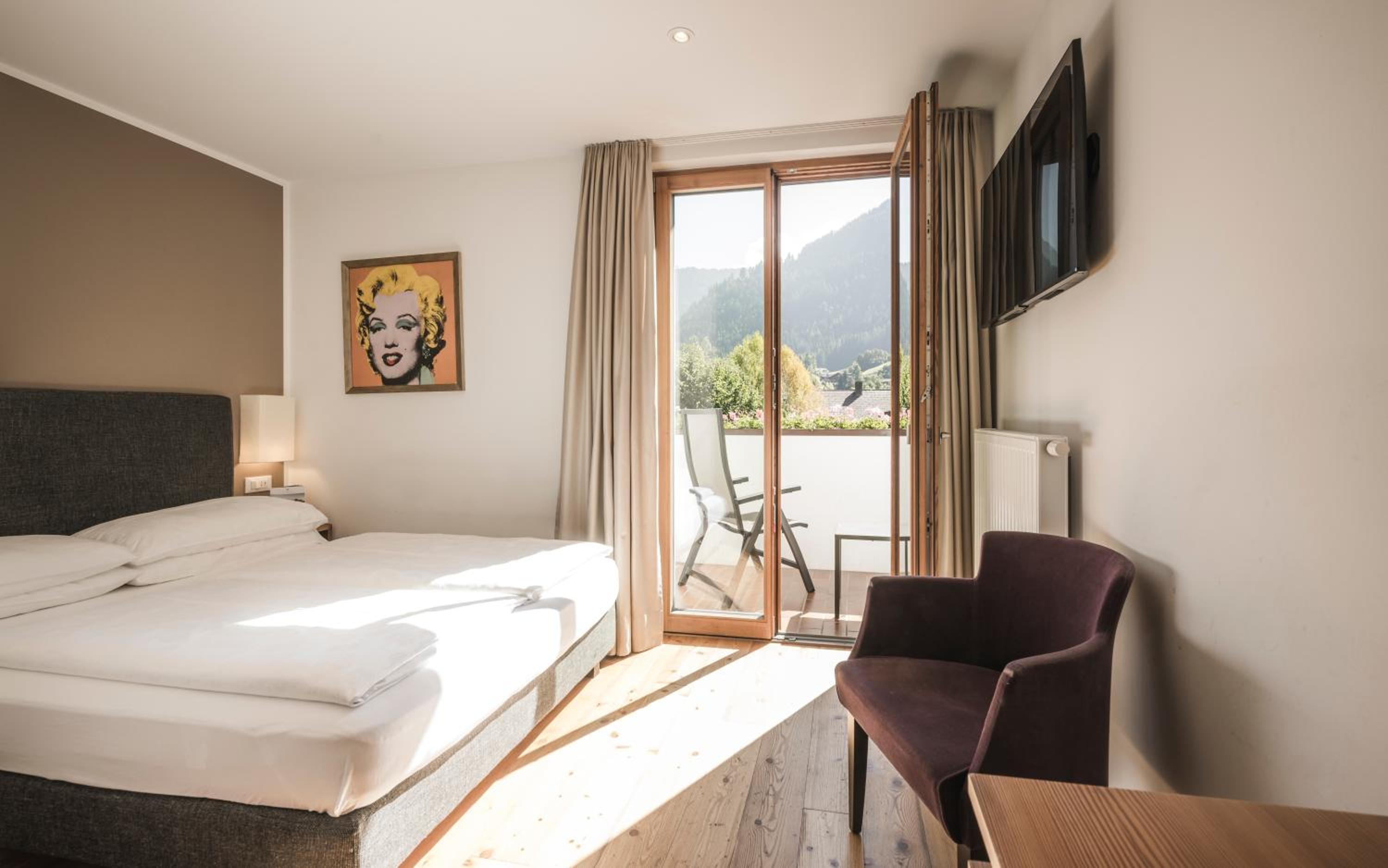 Alpine Charm: Immerse yourself in the traditional Alpine ambiance of our cozy rooms, featuring wooden furniture and picturesque mountain views from private balconies.
