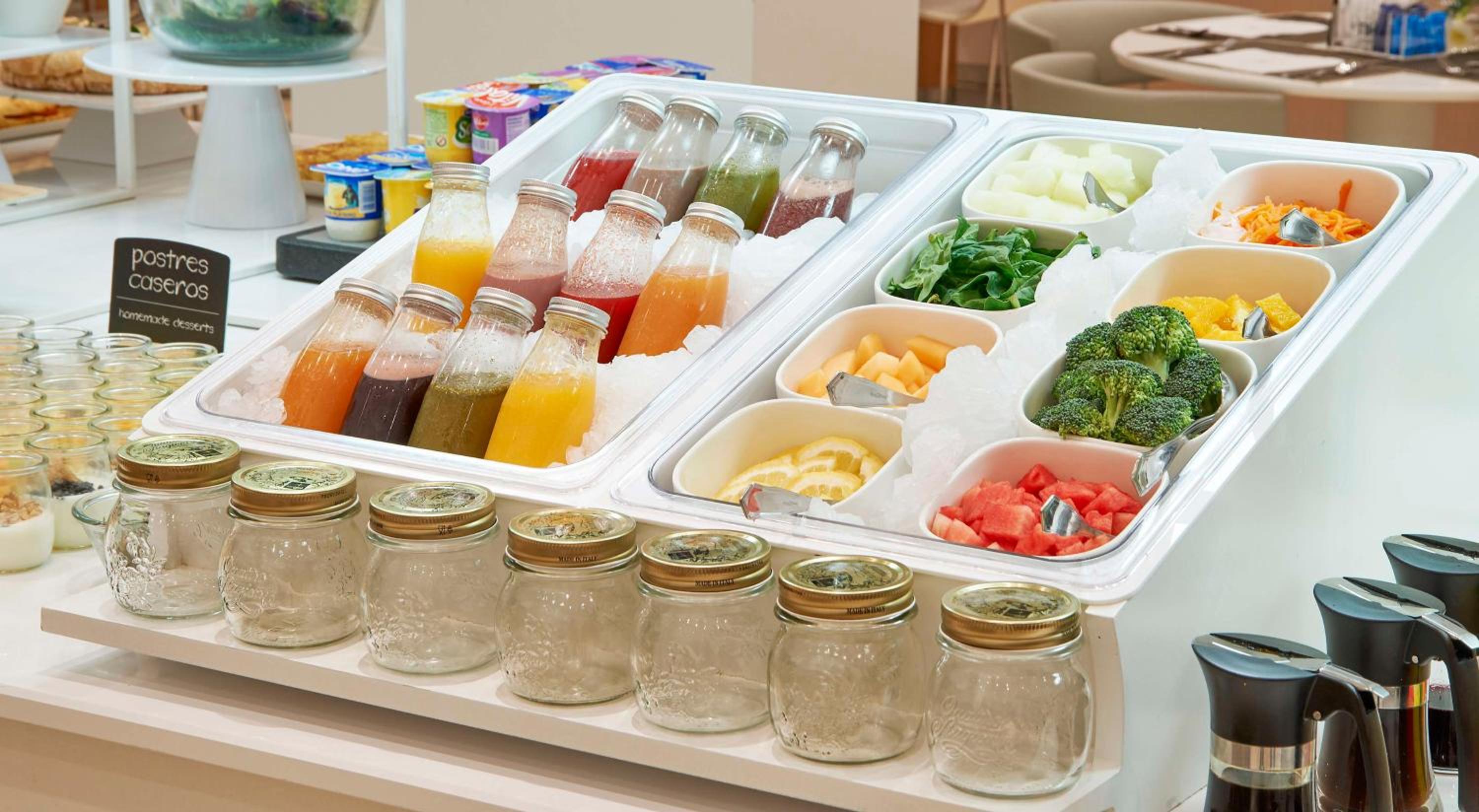 Indulge in traditional Spanish cuisine at our spacious restaurant, or enjoy a refreshing drink at our stylish bar. Start your day right with our varied Antiox breakfast buffet, offering a range of healthy options to kickstart your morning.