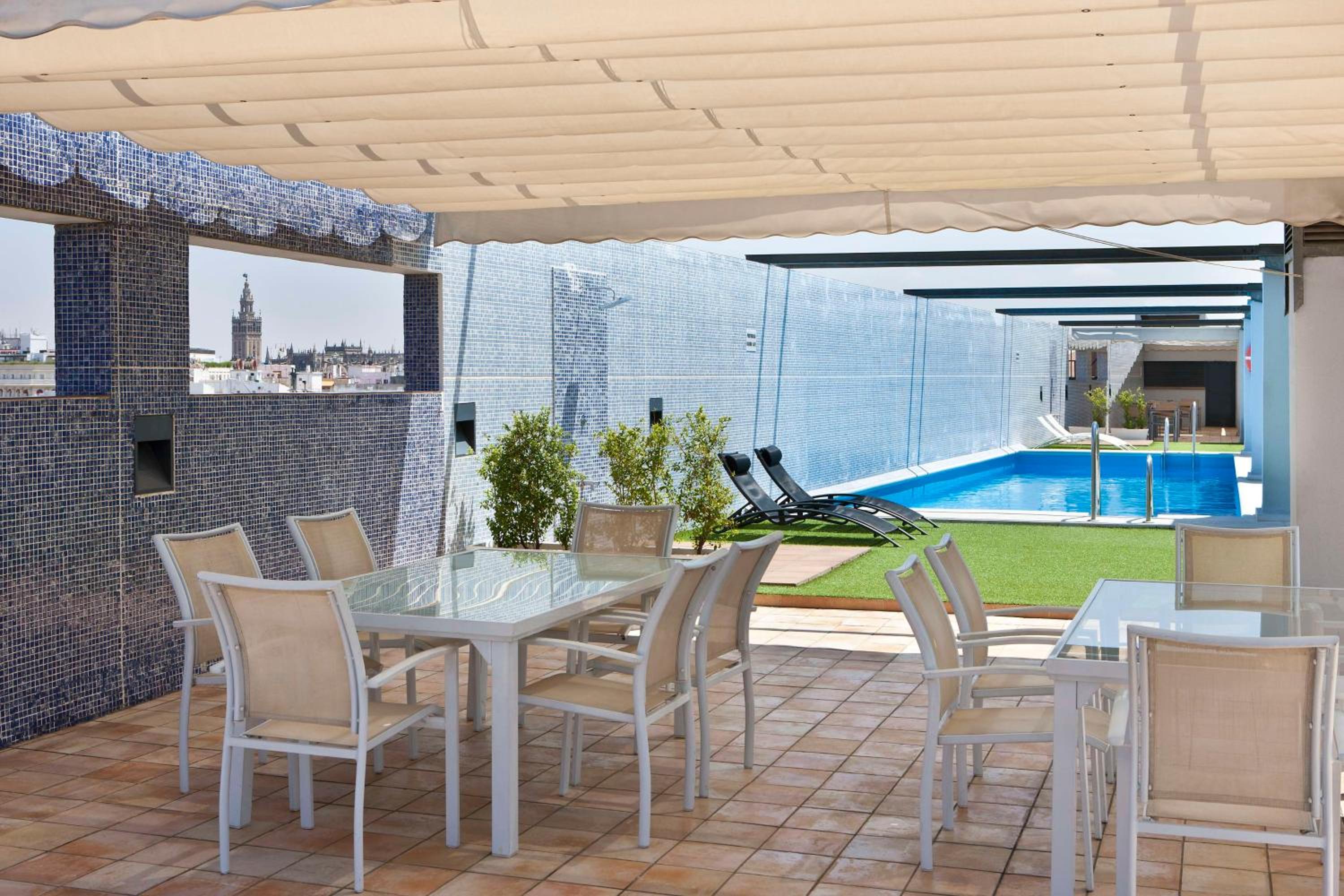 Experience the breathtaking beauty of Seville from our rooftop pool, offering unparalleled views of the city. The elegant rooms at Hotel NH Sevilla Plaza de Armas boast modern design and free WiFi, ensuring a comfortable stay.