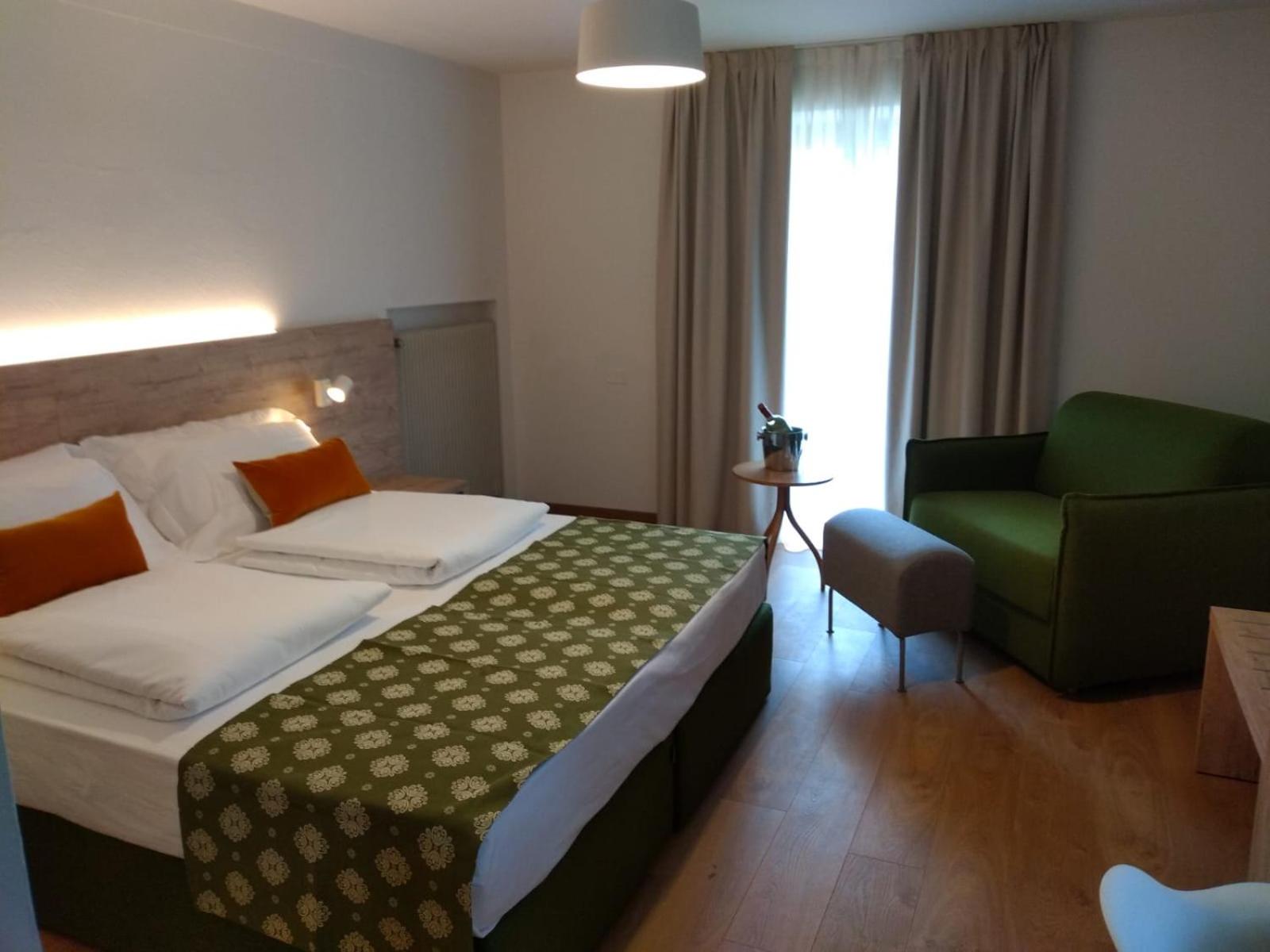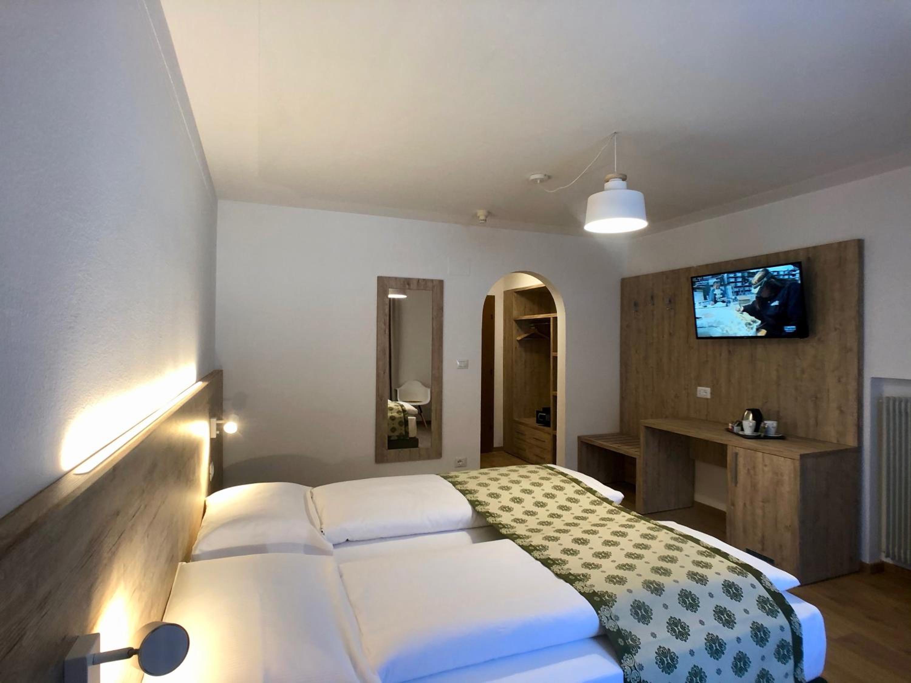 Alloggiato in una Suite famigliare, stanza molto ampia, letti comodissimi. Molto belle le aree comuni, rifinite in legno che danno calore all'ambiente. Ottima e varia la colazione. Alloggiando durante la stagione sciistica ho apprezzato la ski room con accesso posteriore all'hotel.