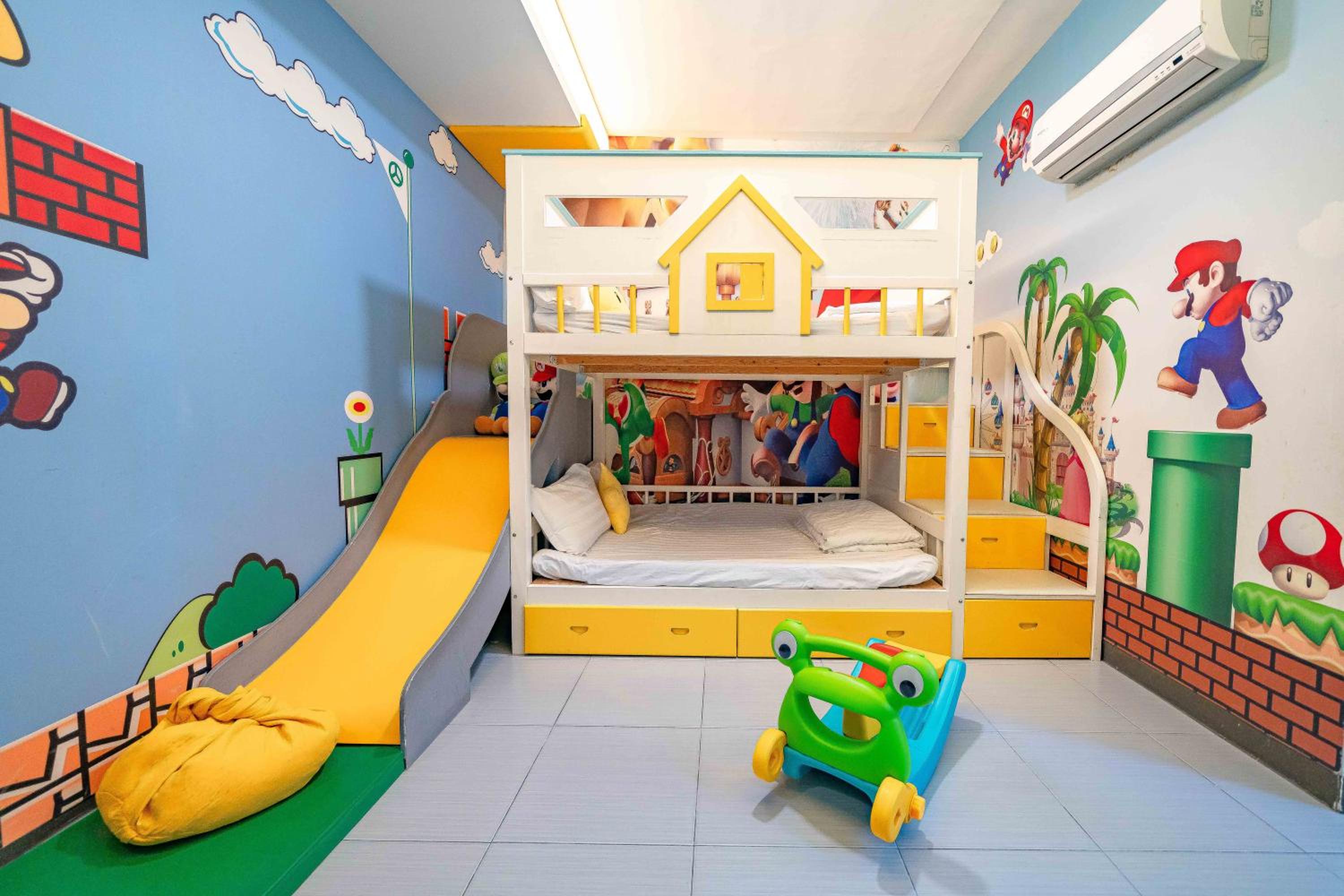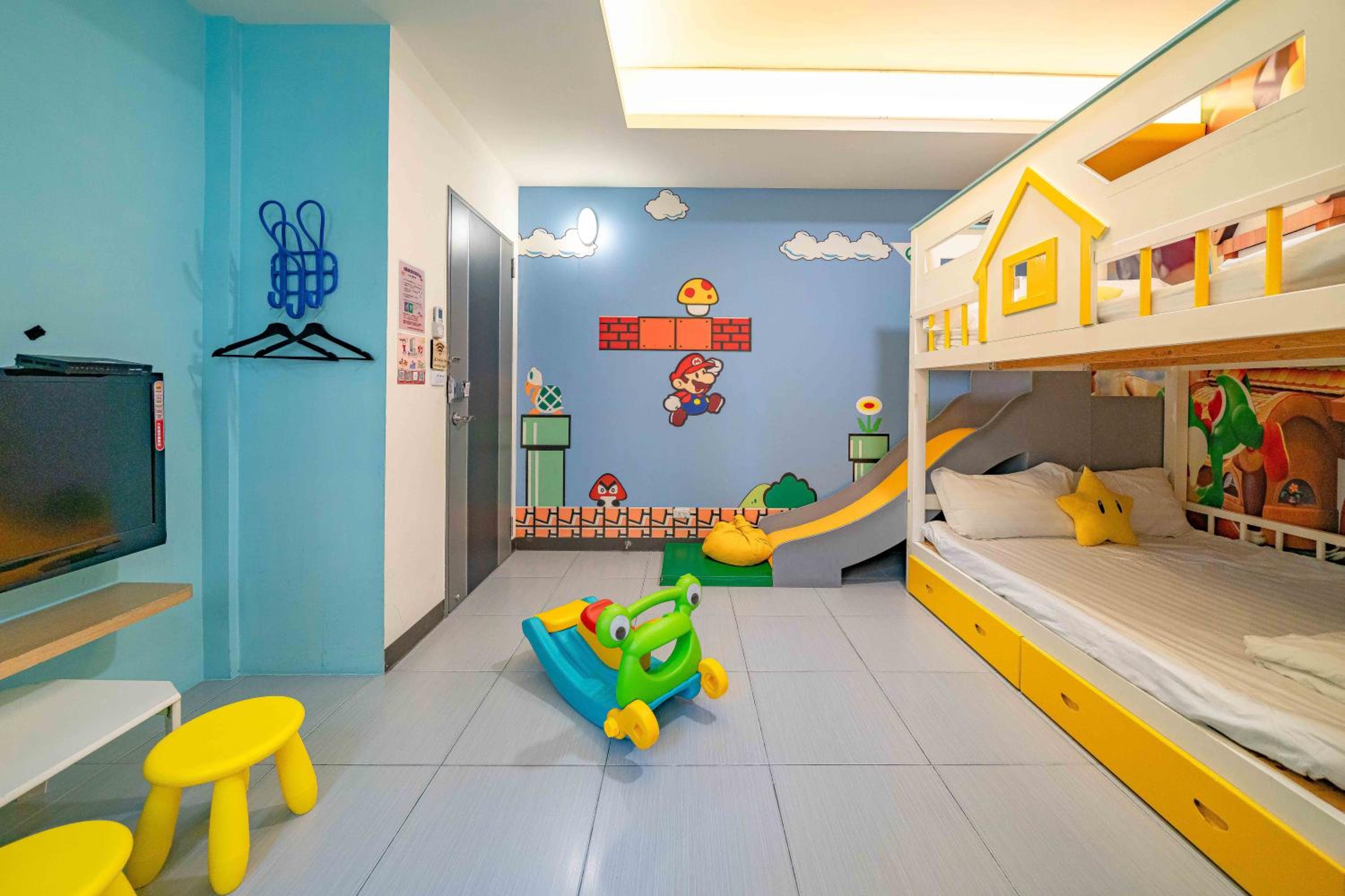 3、房主很貼心,給了二隻大玩偶馬利歐,還有一個小搖車。