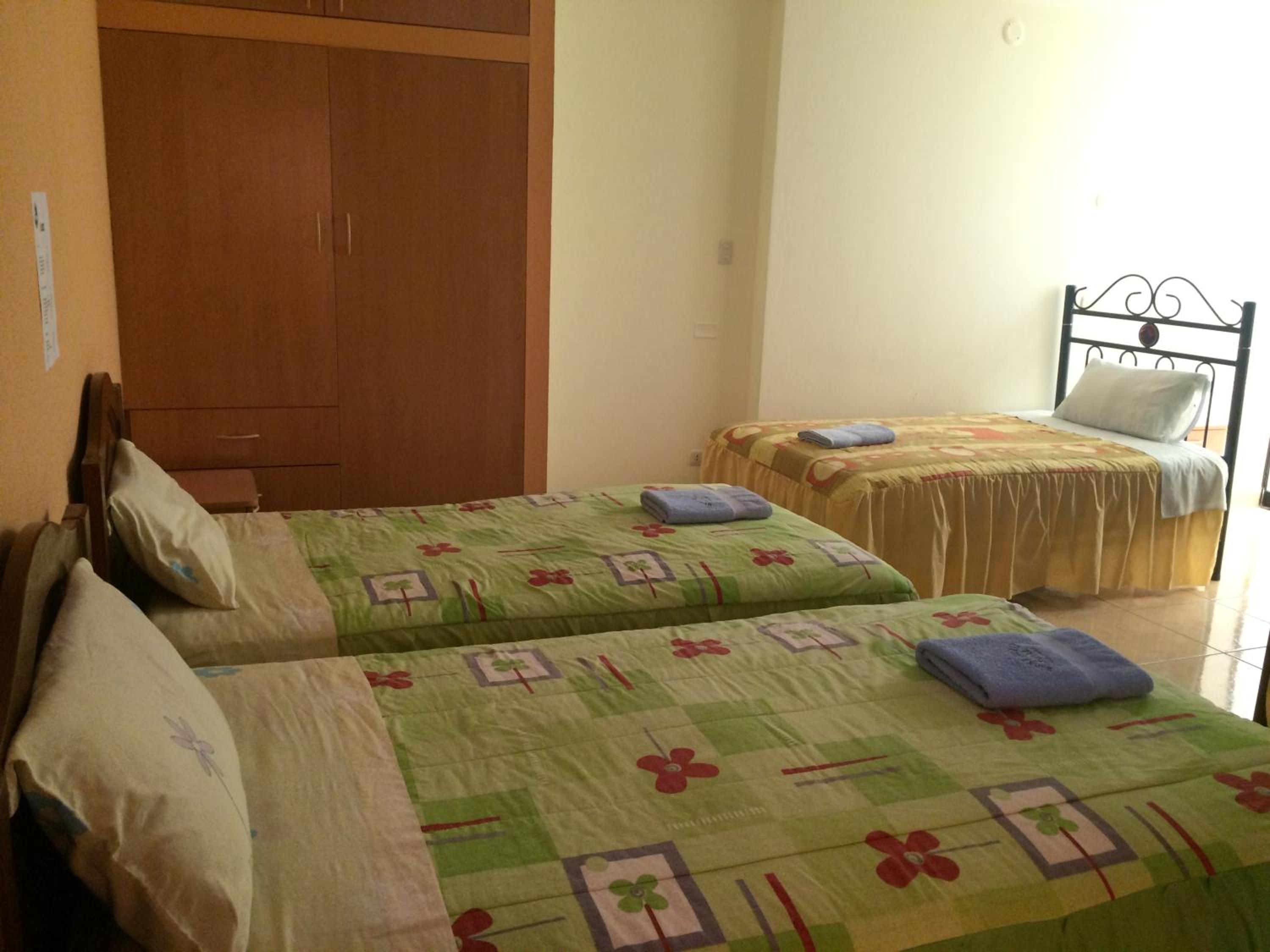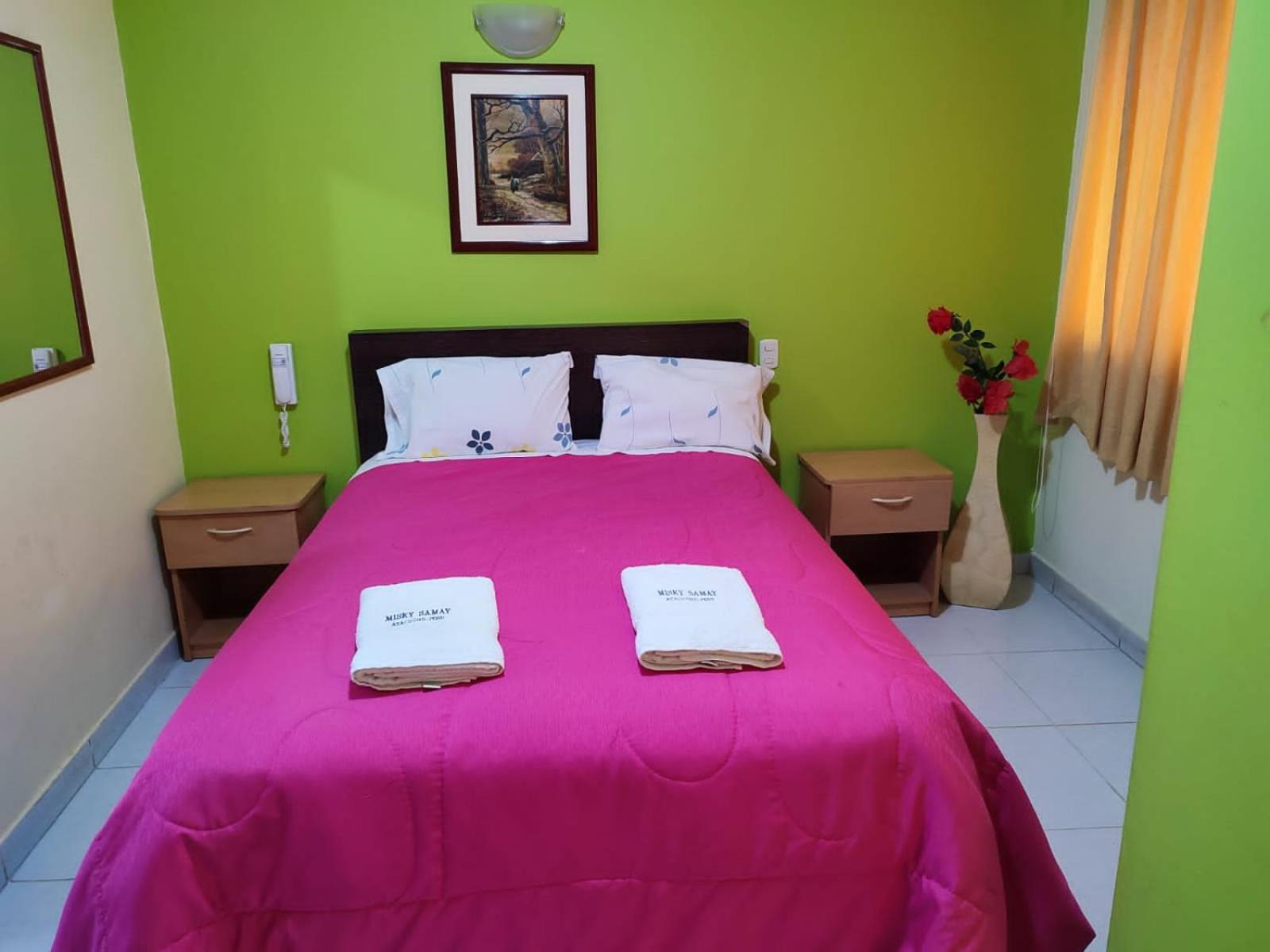 Sinceramente lo que más nos gustó fue la presión de agua que tenía la habitación, pensamos que porque estaba en un tercer piso y en una galería comercial no tendría una buena presión pero esa ducha parecía una catarata, además siempre contaba con agua caliente (excepto el caño, este no tiene agua caliente) hasta de madrugada. La ubicación es perfecta, en frente del mercado donde antes de las 6am puedes tomar un delicioso desayuno y super cerca a la Plaza de Armas (donde están las agencias de turismo y de donde salen/llegan los tours), museos, iglesias, farmacias, tiendas, calle 28 de Julio, etc. Al registrarnos nos preguntaron si queríamos la habitación doble en el tercer o cuarto piso, pedimos el tercero porque viajaba con mi mamá y esta era super grande, las camas super cómodas y con varias frazadas para el frío. La limpieza del cuarto fue espectacular, no había polvo o manchas de nada, lo limpiaban todos los días y nosotras pedimos que nos cambiaran las toallas diariamente por lo que siempre al regresar de pasear encontrábamos toallas limpias y papel higiénico nuevo en la habitación. La atención por parte del personal, al igual que la limpieza, espectacular, sobre todo de parte del administrador José Luis que fue muy amable guardando algunas compras que hicimos en el refrigerador del hotel y siempre contestando el WhatsApp. Sin duda una muy buena opción para hospedarse en Ayacucho.