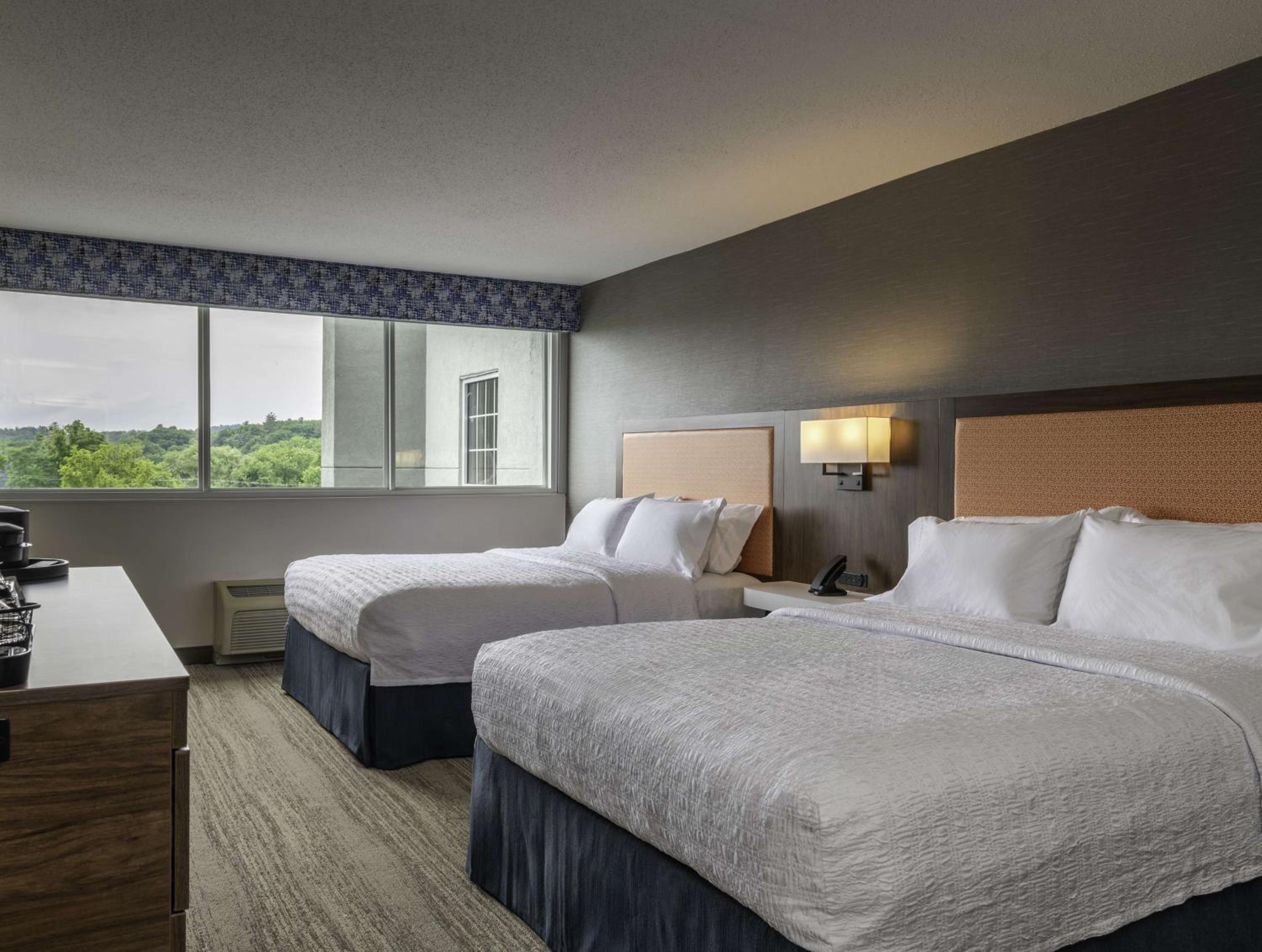 Experience a cozy stay in our traditionally decorated rooms featuring plush bedding, a 32-inch flat-screen TV, and convenient amenities like a microwave and refrigerator.