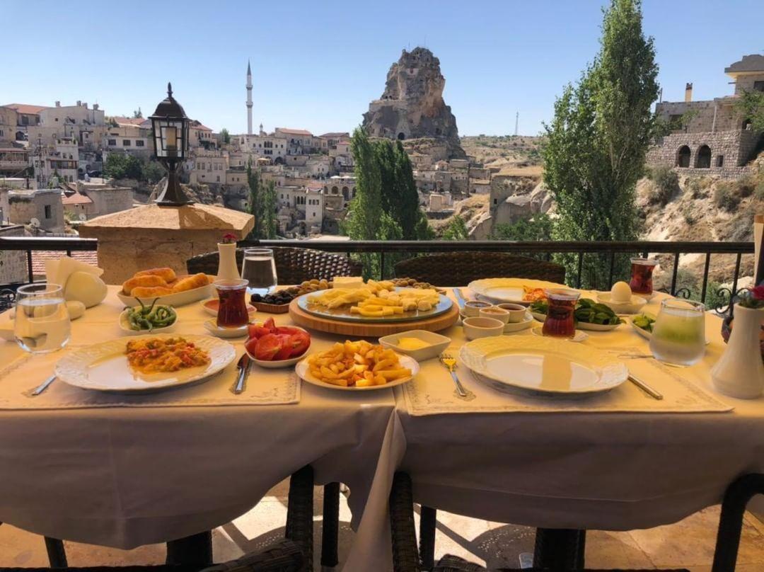 Great, fresh and abundant breakfast and a great view of Ortahisar's Castel from the terrace.