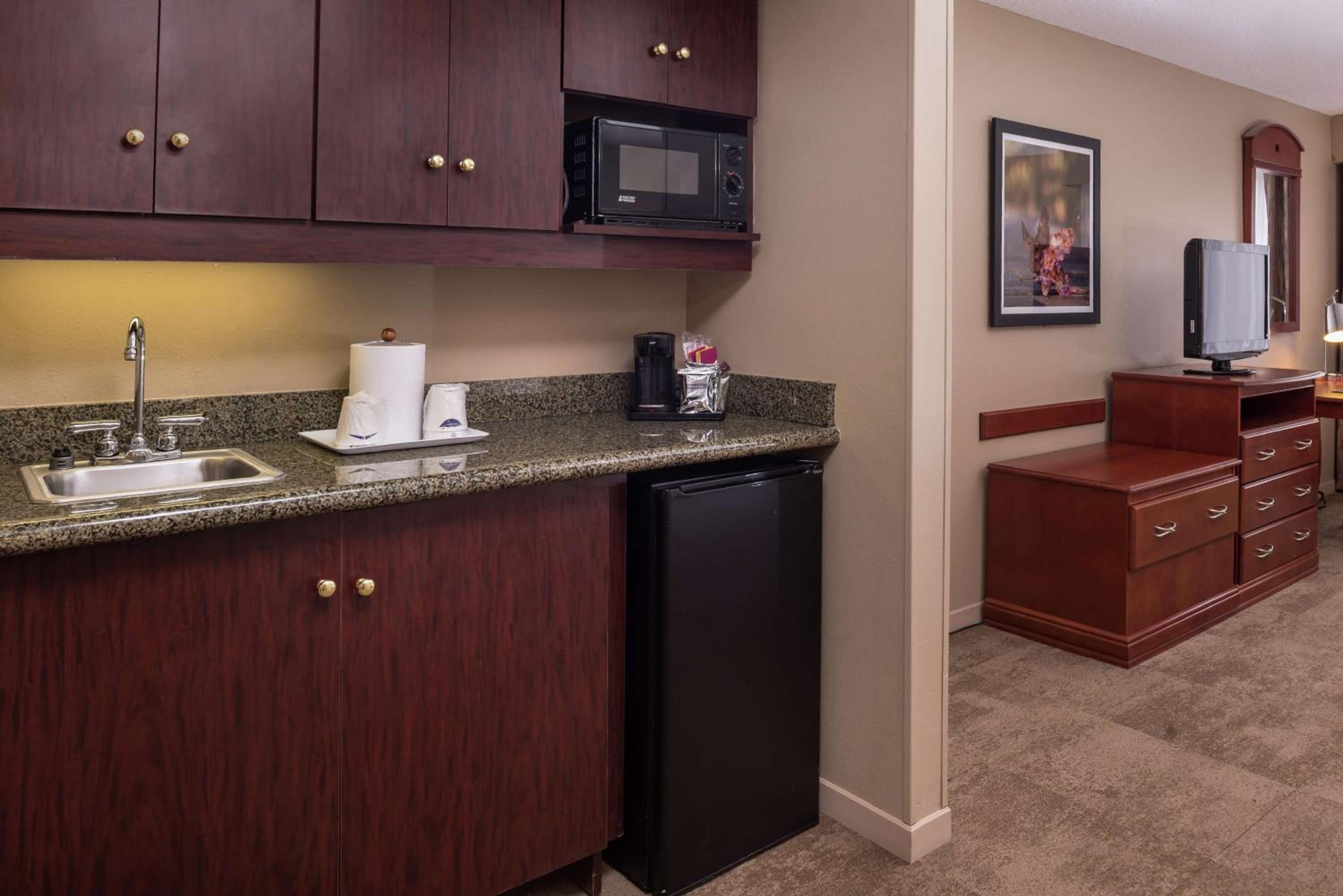 Great location with many restaurants, gas stations, and stores. Fabulous free breakfast Beautiful pool.