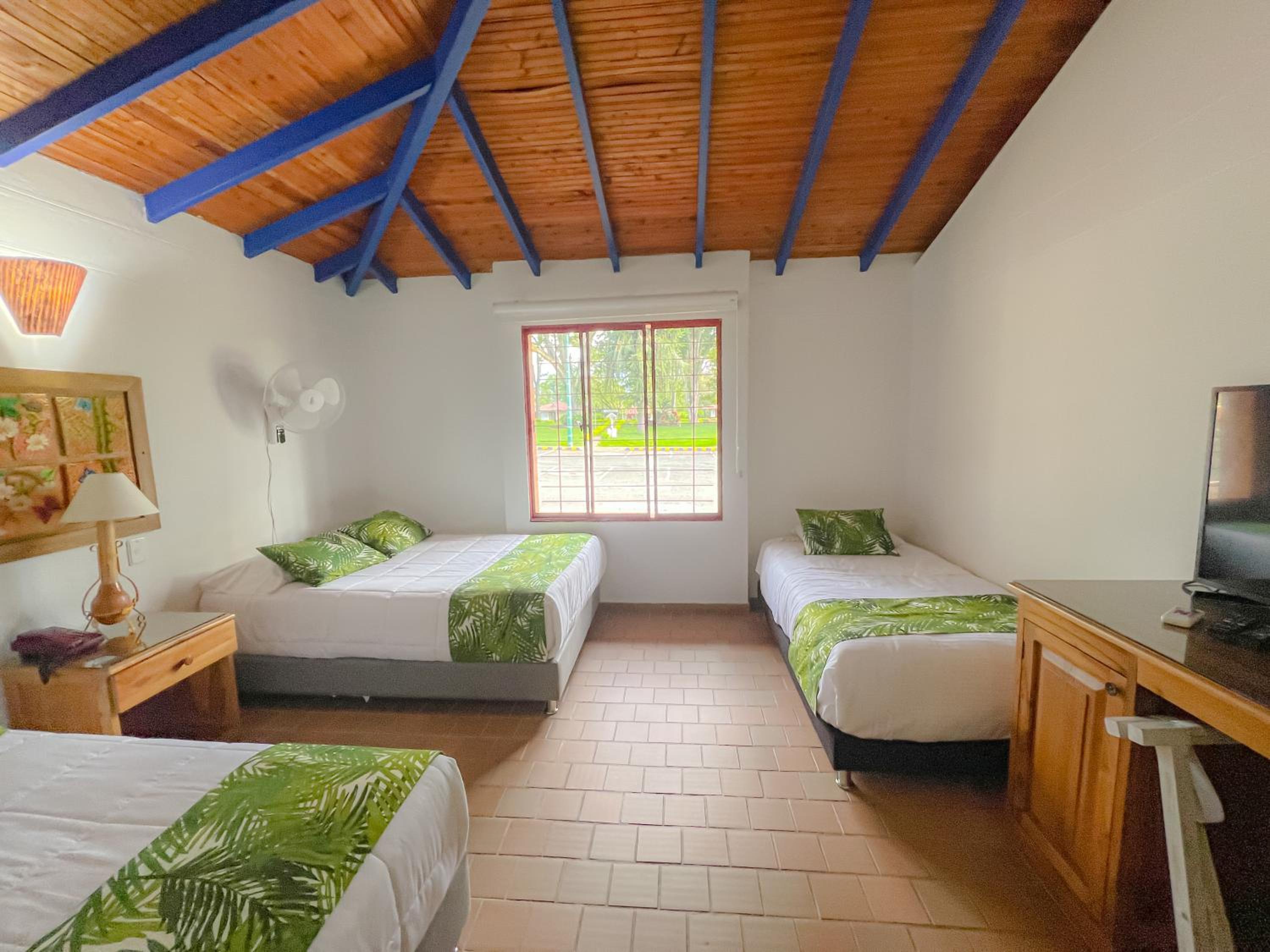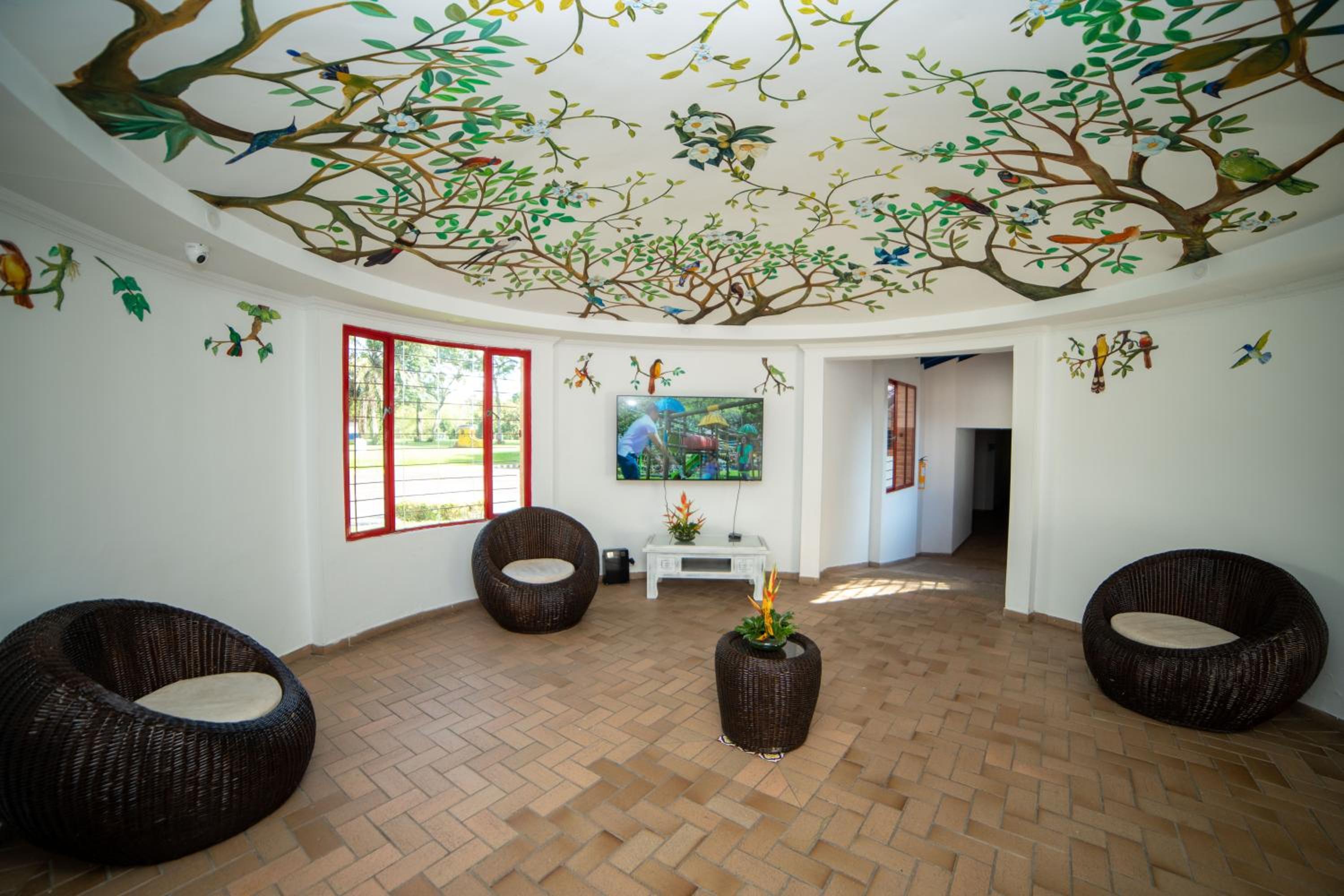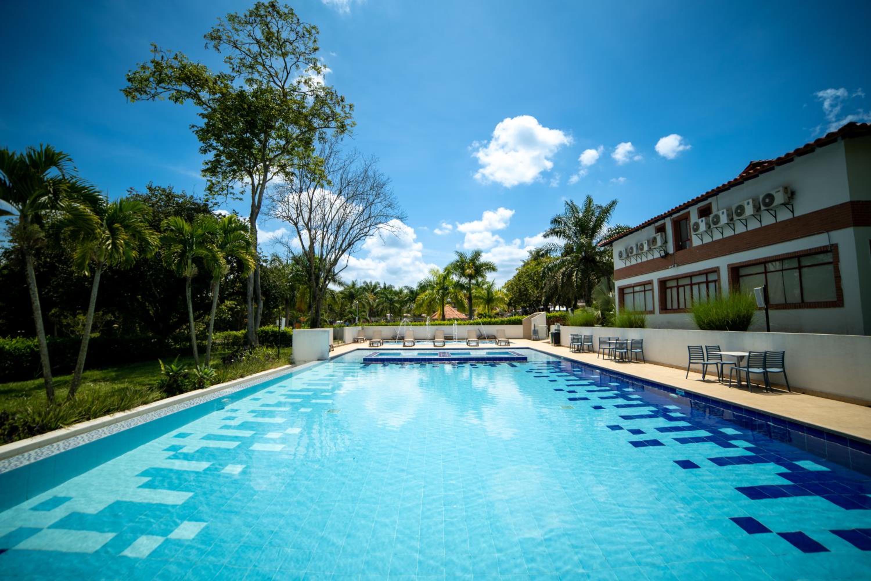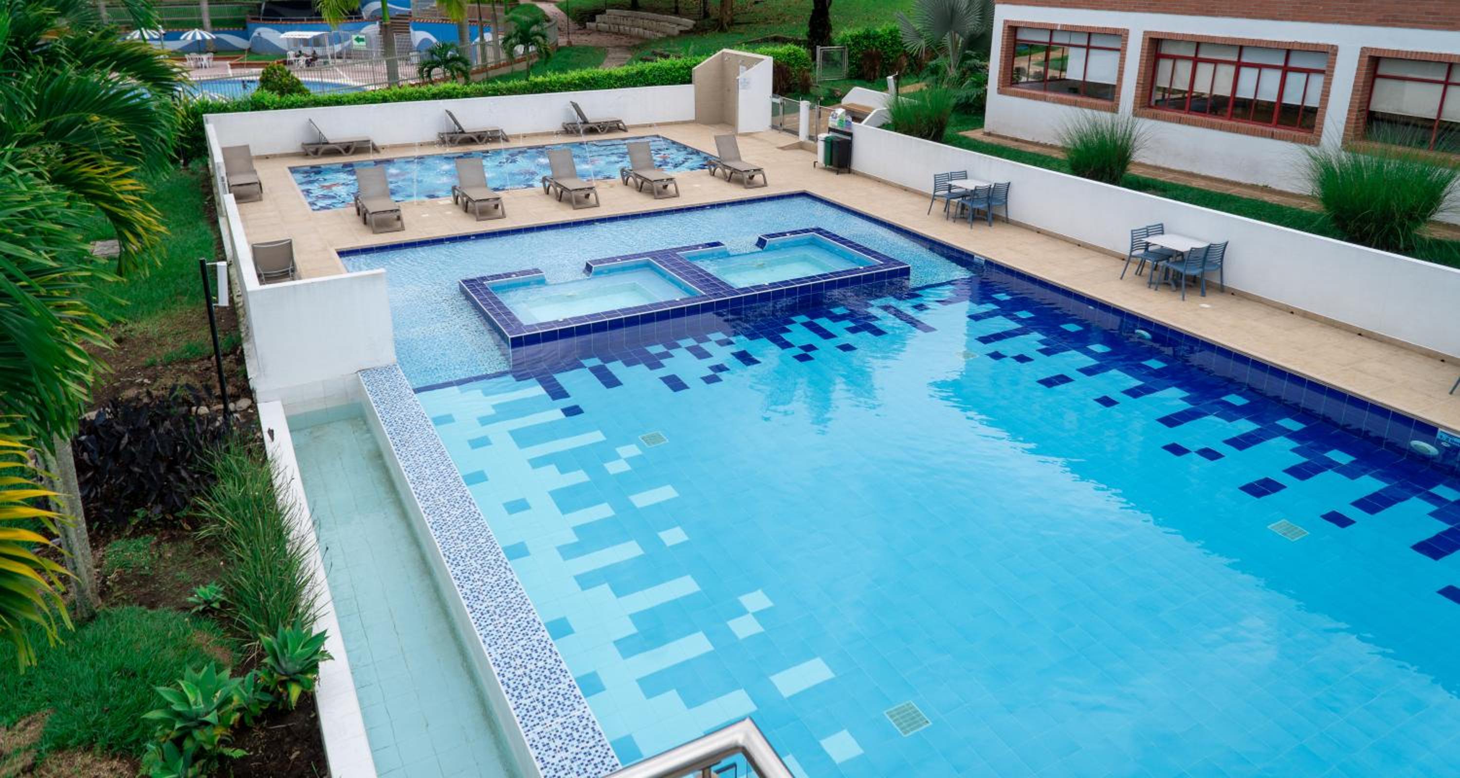 Lo mejor fué la ubicación. Queda a 5 min del aeropuerto y en toda una vía principal. Las piscinas muy buenas y tiene muchas zonas verdes. Es un club de una caja de compensación familiar y por lo tanto sus instalaciones son muy amplias.