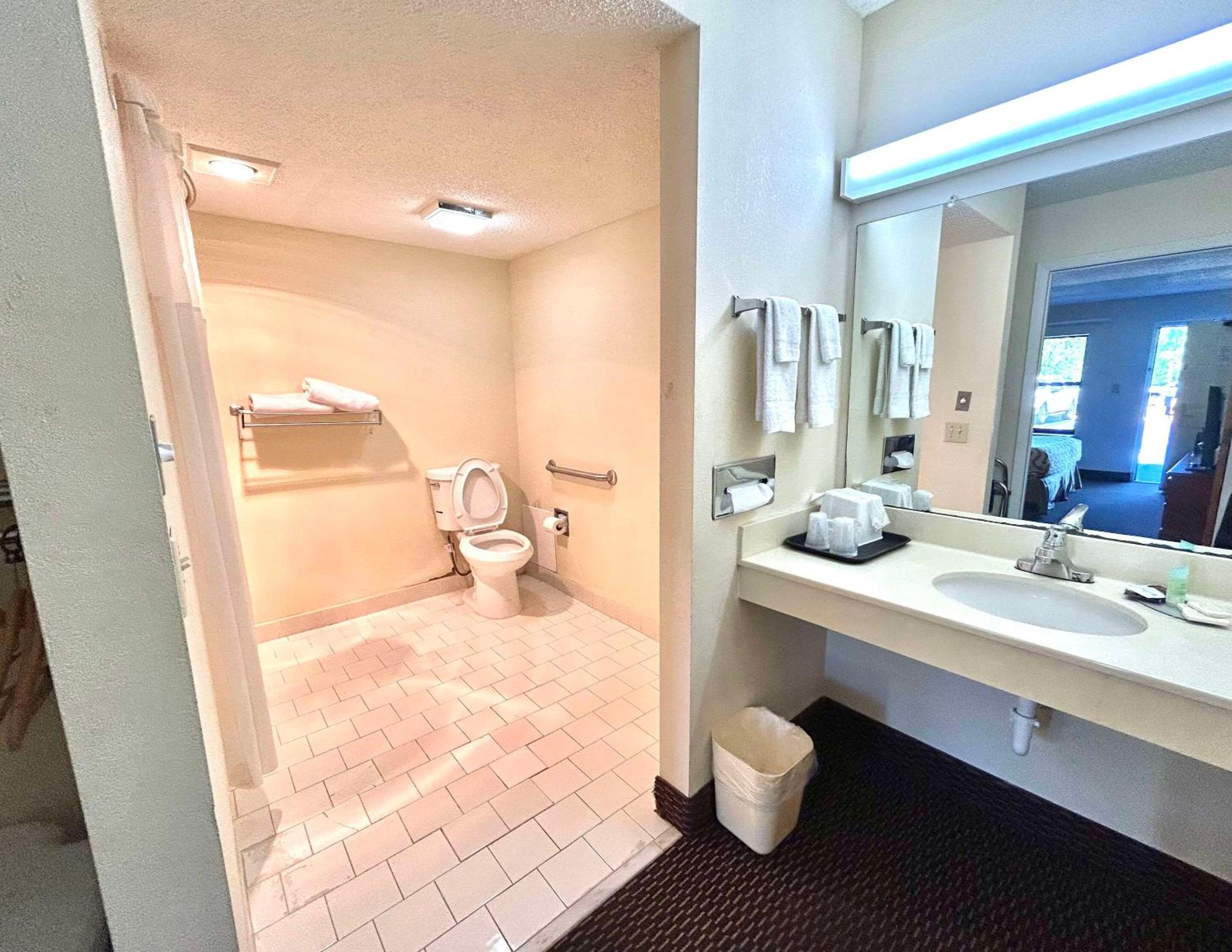 We paid for a double queen room on the first floor for handicapped and another guest who asked for a king was given our room then we was told that the only room available was a double queen on the second floor. When truly it was a double double. Me and my wife was not able to sleep in the same bed due to the size and so we had to sleep in separate beds.