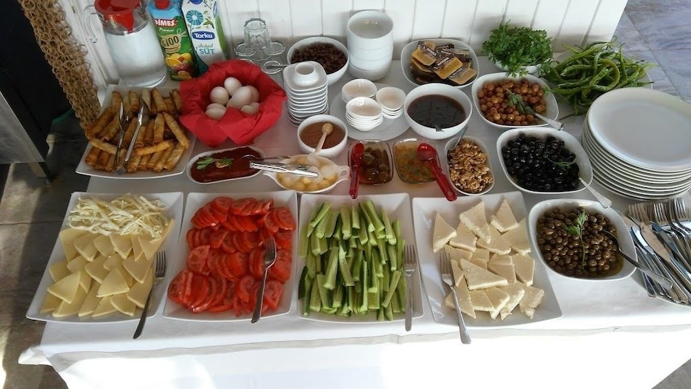 The hotel is decorated nicely inside and outside. It looks really cozy and summery. The breakfast we had every morning was a delicious Turkish breakfast, with typical Turkish breakfast items. I had the same breakfast every morning and did not get bored of it.