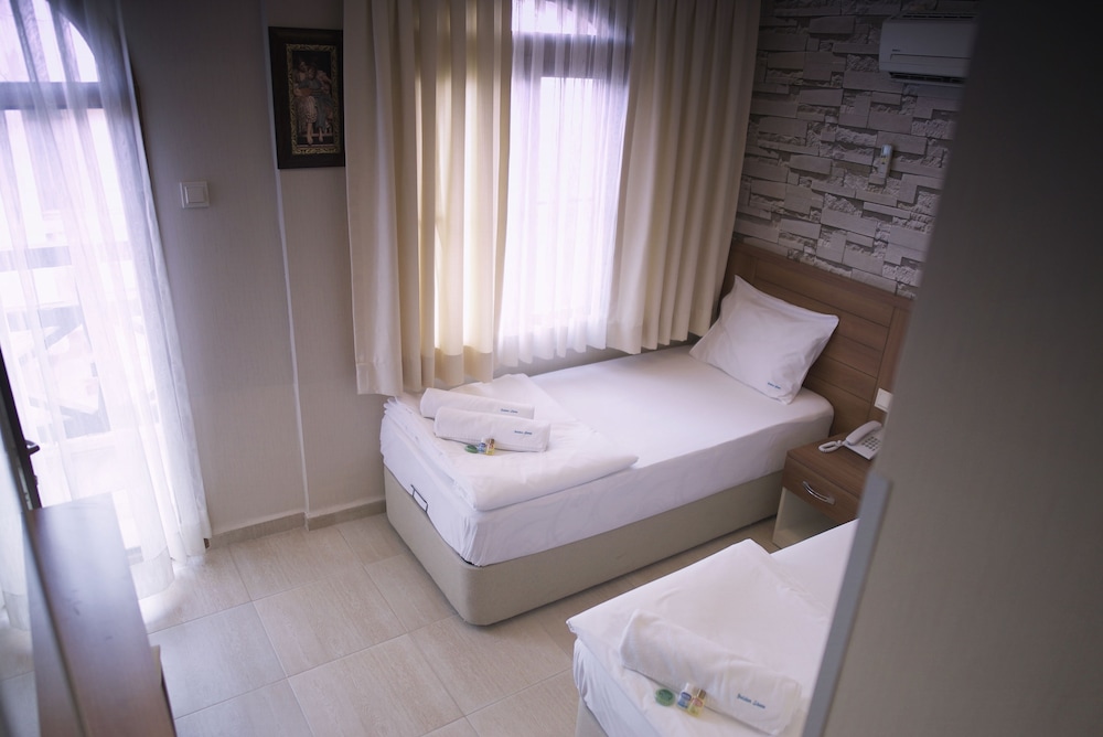 bu güzel işletme de 2 gece konakladım cana yakın çalışanlar, odaların ferahlığı ve temizliği, kahvaltının çeşitliliği ve tabii ki harika teras manzarası.. geçirdiğim tüm vakit harika geçti şiddetle önerip tavsiye ediyorum. aklınızda en ufak bir şüphe olmasına bile gerek yok