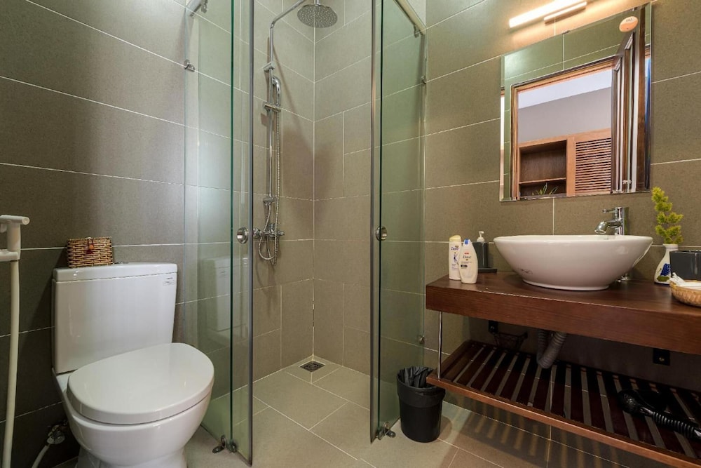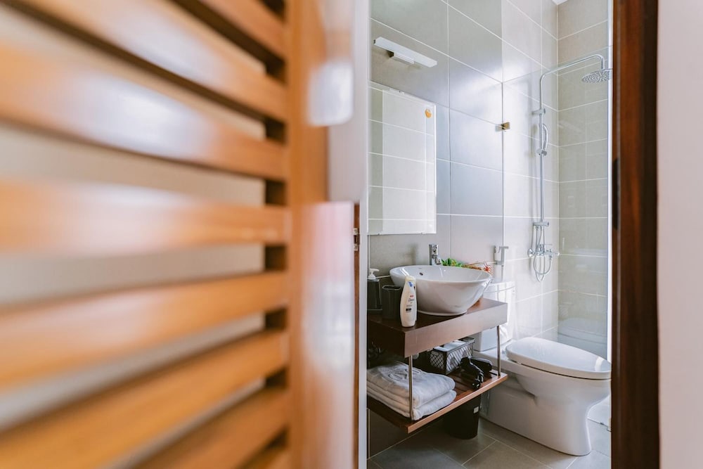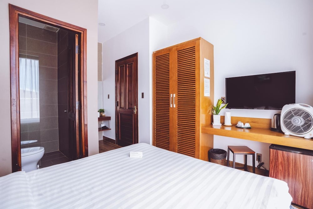 Room is just like photos and very comfortable and modern. The first night was totally good, however the second night was quite noisy, neighbors had karaoke around 10pm then some construction noise came out then water pump vibrated starting around 2am till 4 or 5am. The location is okay a bit far from city centre but with a motorbike that's fine to go everywhere.