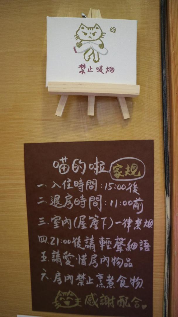Beautiful terrace to look out at the mountains, nice breakfast ritual, host is so welcoming and cute, location is excellent to right next to the end of the tea & mist trail - you don't even need to go back to the main road, bed is super comfortable, shower is huge and great (best we had in Taiwan), cute cat decor everywhere