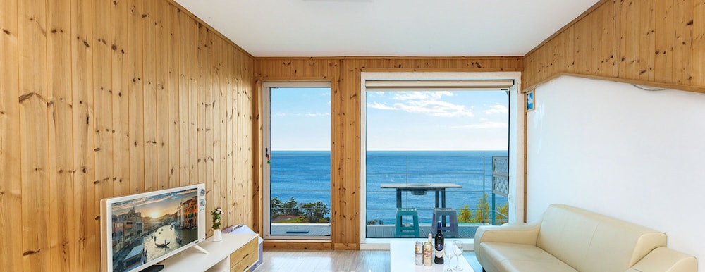 날씨가 흐려서 바다풍경을 충분히 즐기진 못했지만 침대에 앉아 거실 통창으로 보이는 뷰는 좋았습니다.