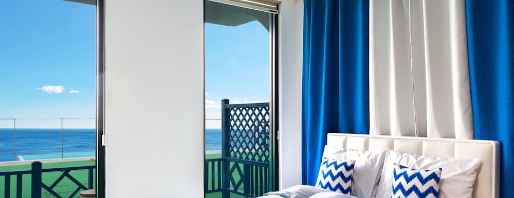 객실 전면이 통창에 탁트인 전망이라 낮에는 햇빛에 일렁이는 은빛바다로 물멍하고
