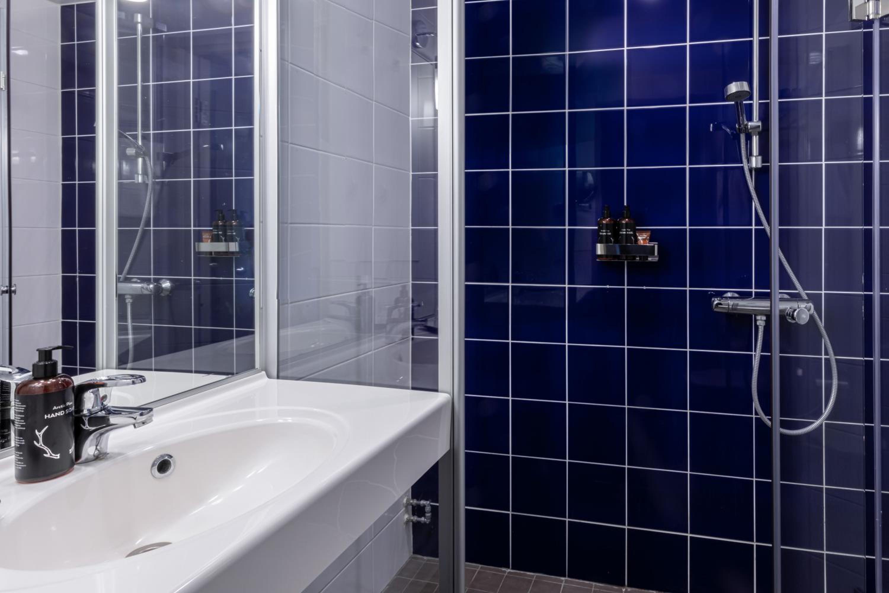 Indulge in a complimentary sauna session and explore unique souvenirs at our Lapland-themed gift shop.
