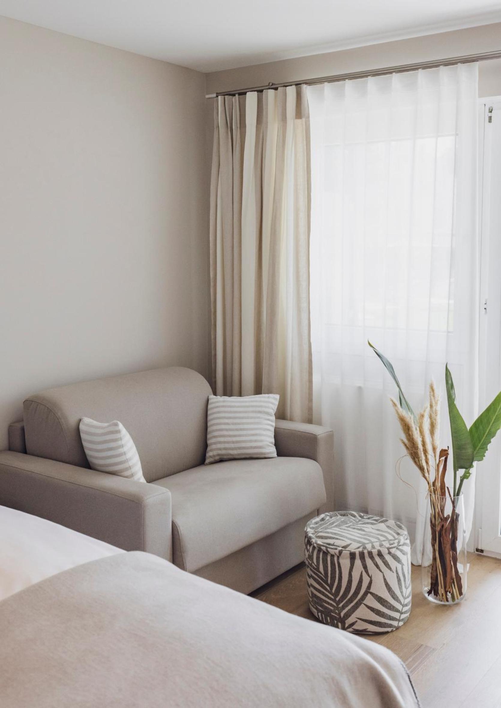 Die Abdunkelung in den Zimmer müsste optimiert werden, weil sich der Vorhang auf der Schrägseite des Fensters nicht ganz schliessen lässt und es im Zimmer frühmorgens komplett hell wird!