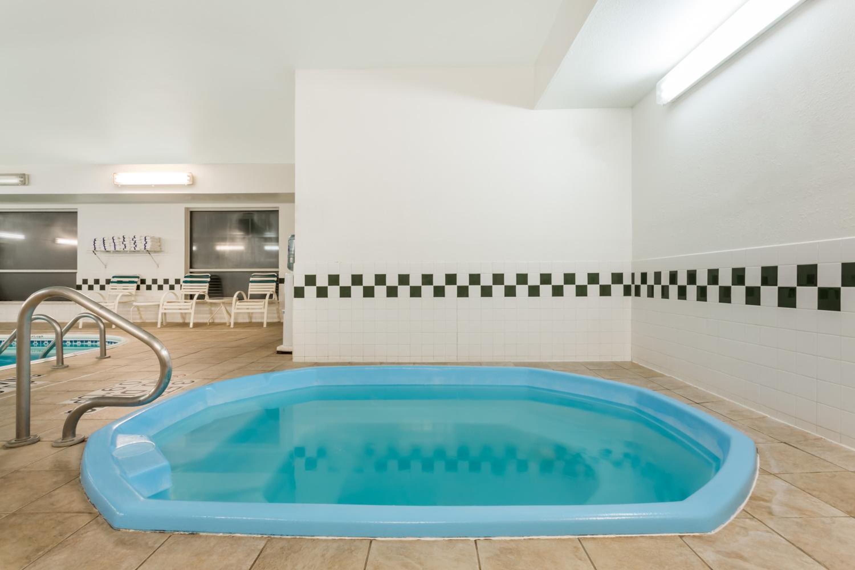 That hotel was absolutely disgusting black mold in the bathroom and the door was held together with about 60 screws the smell of the room was absolutely horrible hot tub was disgusting and dirty you could see the dead skin floating at the top of the water and jets did not work and it was not hot pool seemed ok to the kids the room had no smoke detector and the hotel had cockroaches our stay was absolutely horrible and will never stay again slept half the night in the car