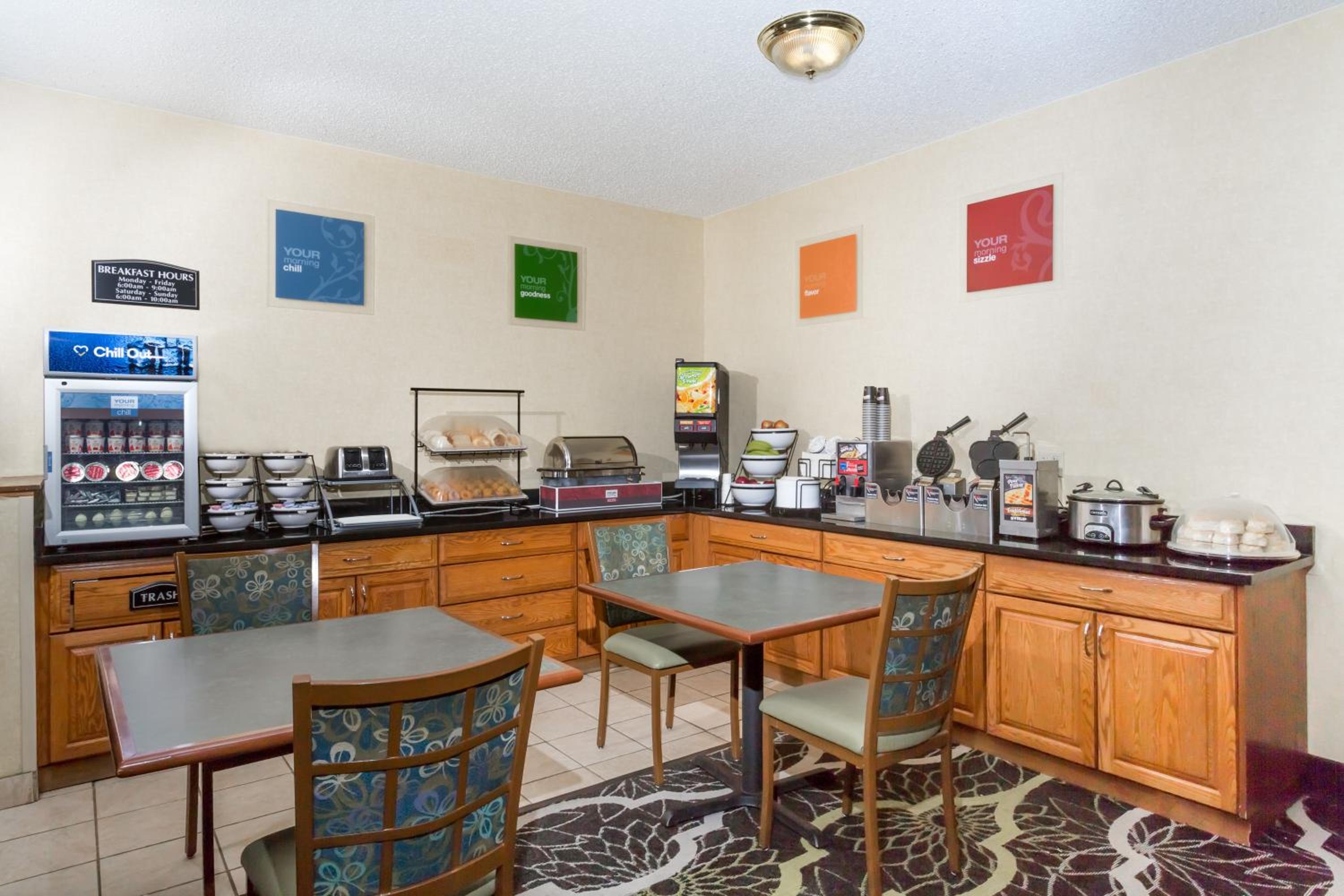 When I wanted to check in at 130am do to long drive the front desk person was on his cell phone with ear buds in and took him about 15 mins to acknowledge me. And the hot breakfast was cold as I don't think the warming pan worked or was turned on.