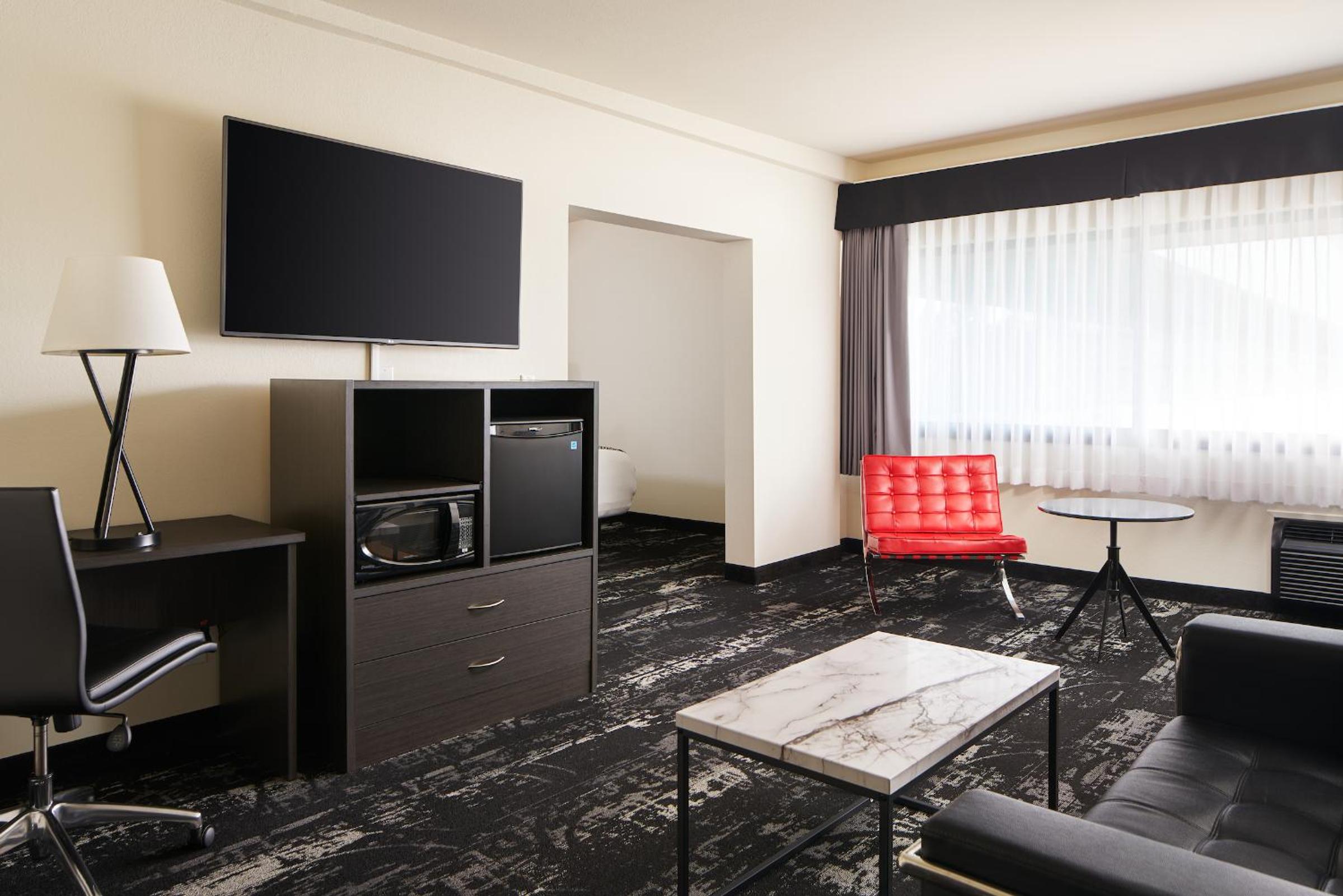 Indulge in the comfort of cable TV, tea/coffee facilities, and a cozy seating area in each warmly decorated room at Centennial Hotel Spokane.
