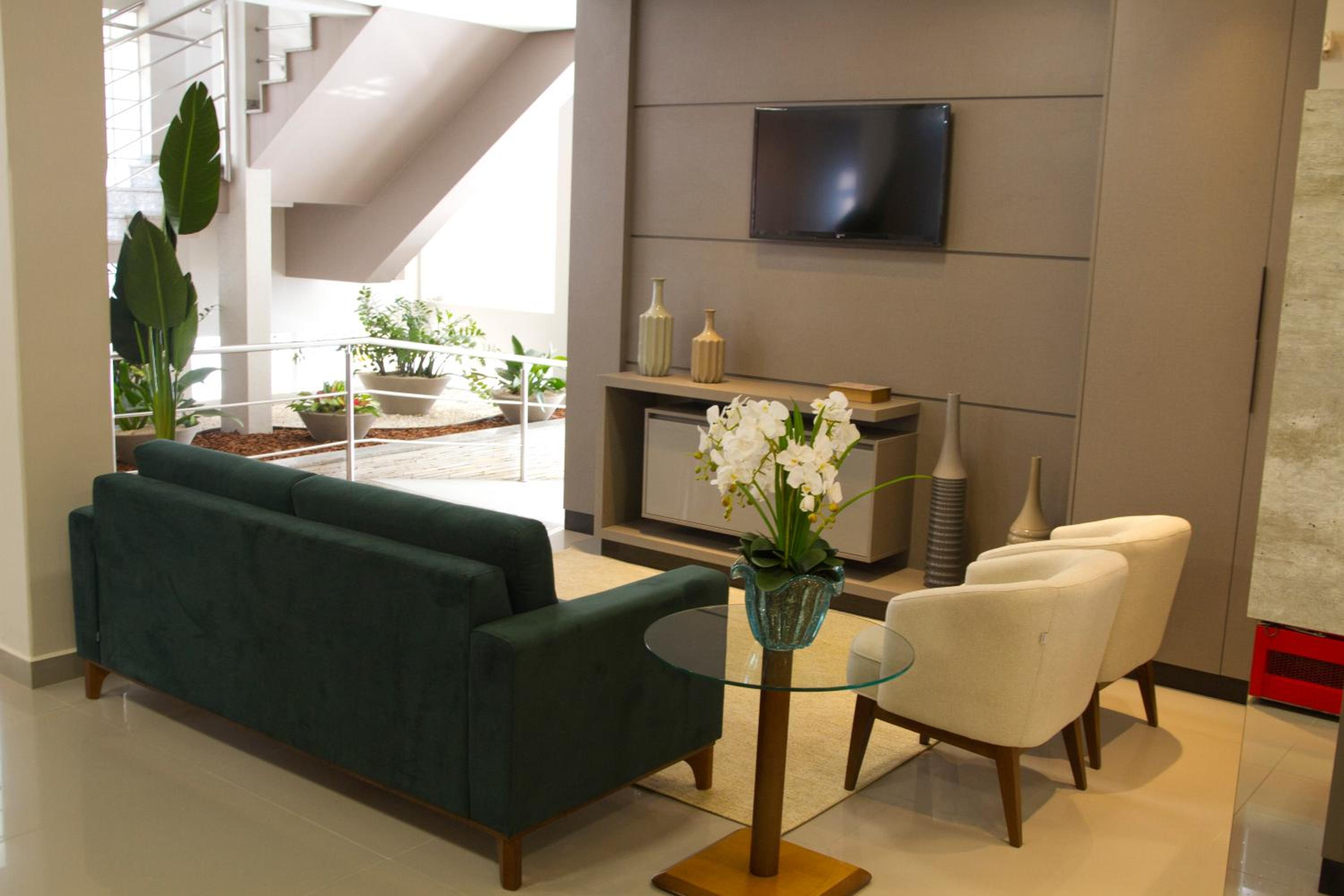 Simples, mas bem estruturado, muito limpo e funcional. Atendimento muito cordial e eficiente na portaria e bom café da manhã. Estacionamento não é no prédio mas muito próximo.