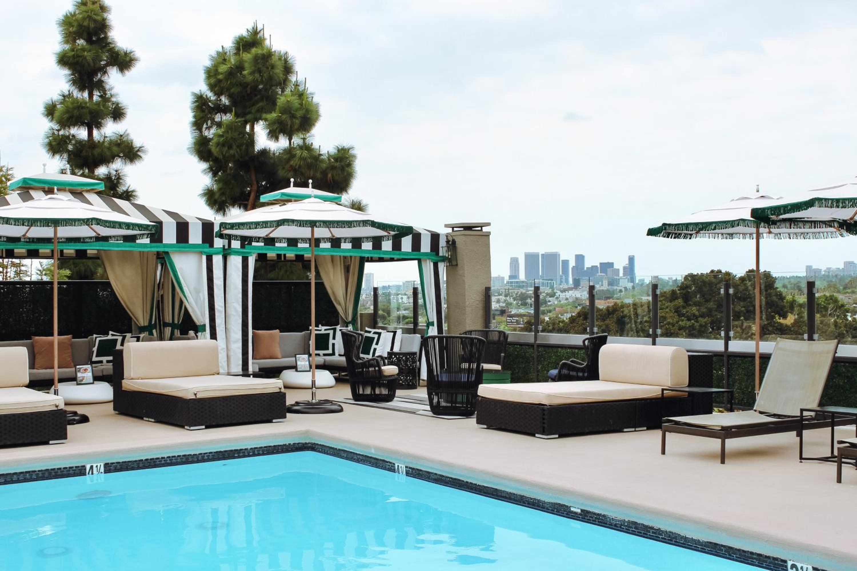 Chic Dining and Rooftop Pool: Guests can indulge in New American cuisine at the hotel's restaurant and bar, which also features a garden patio. The rooftop pool terrace provides stunning panoramic views of West Hollywood, the Hollywood Hills, and downtown Los Angeles.