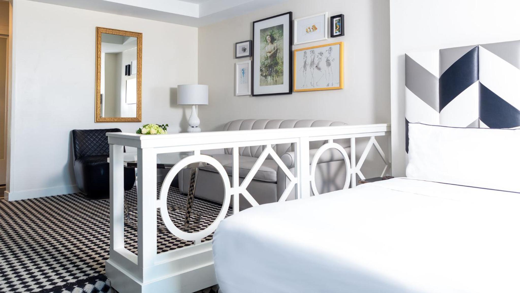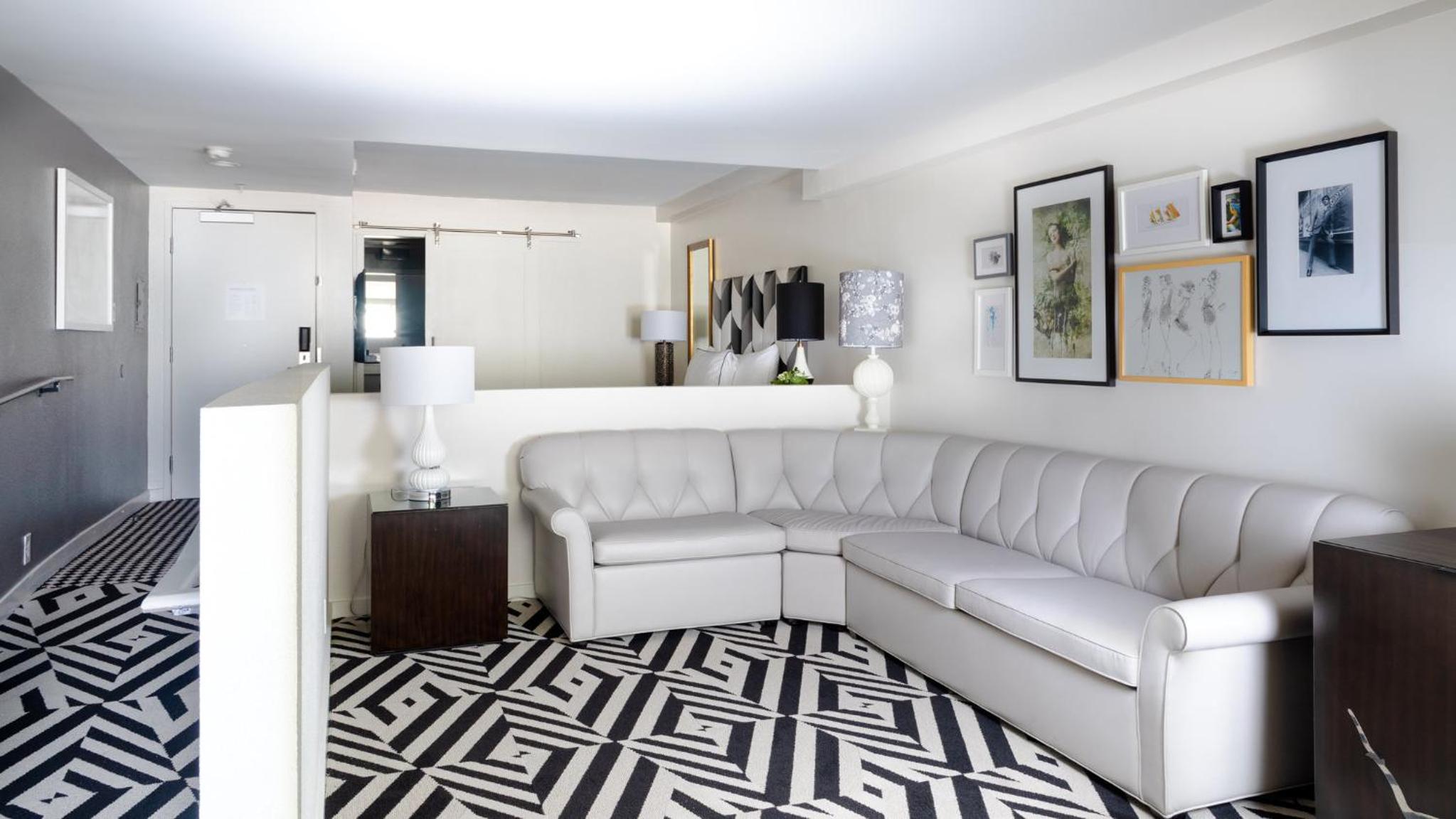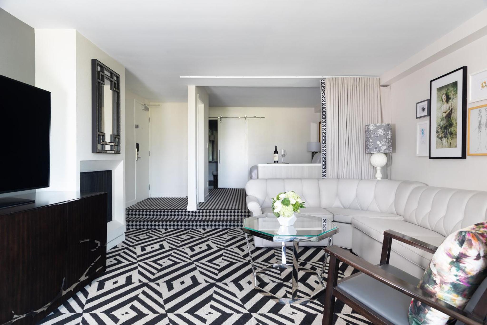 Spacious Suites with Luxury Amenities: The Chamberlain West Hollywood offers spacious suites with separate living spaces, fireplaces, and upscale amenities like two 60” HD TVs and a private balcony in each suite.