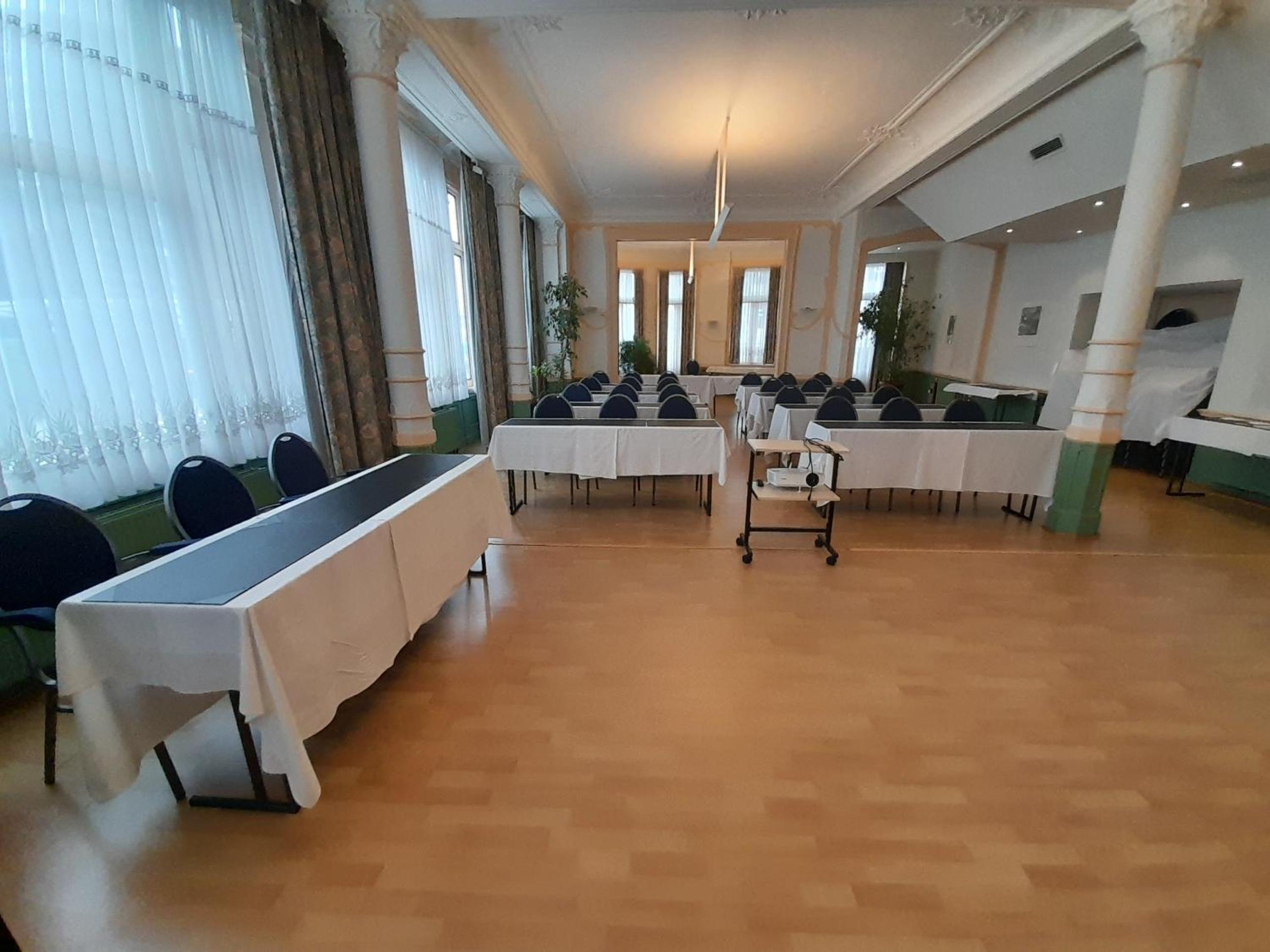 Guests can savor traditional Belgian cuisine at the Kom-Kom restaurant, boasting original art nouveau decorations. Unwind with a drink at the on-site bar or catch up on the latest news with complimentary newspapers in the lobby.