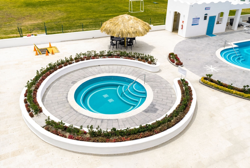 Tiene un buen jacuzzi junto a la alberca