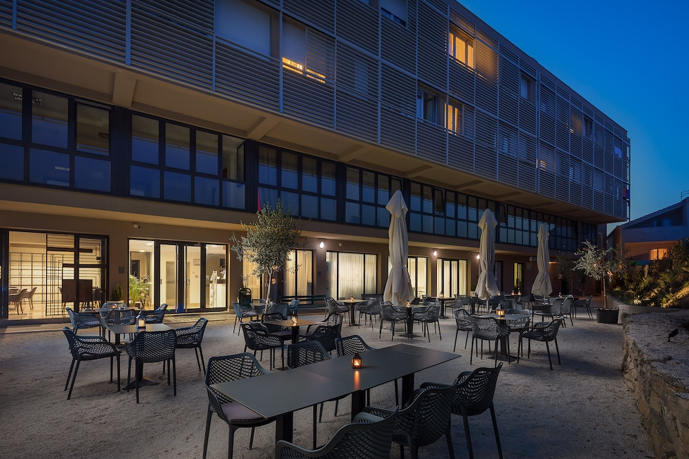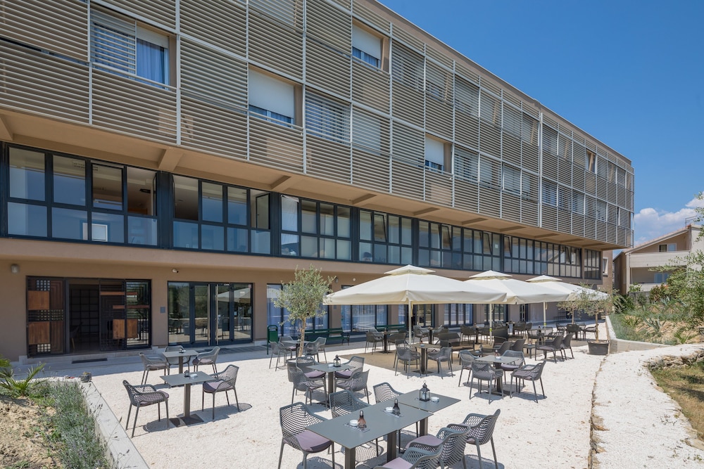 L'hôtel est situé a environ 30 minute de marche de la vieille ville et dispose d'un grand parking. Le petit déjeuner est trés varié et disposé d'une belle terrasse avec des oliviers. La litterie très confortable.