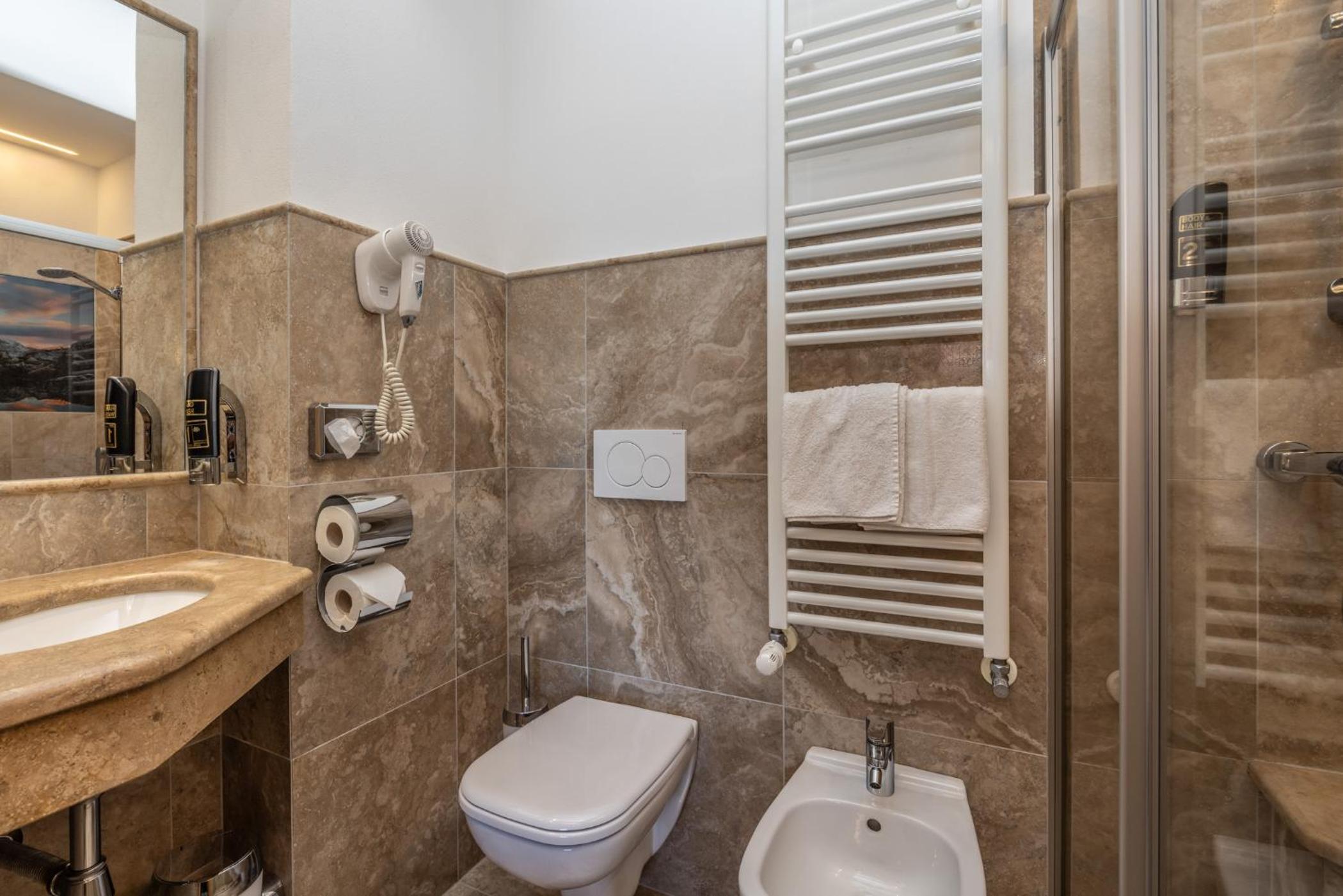 Panoramic Dolomite Views: Enjoy stunning panoramic views over the Dolomites from your room's balcony.