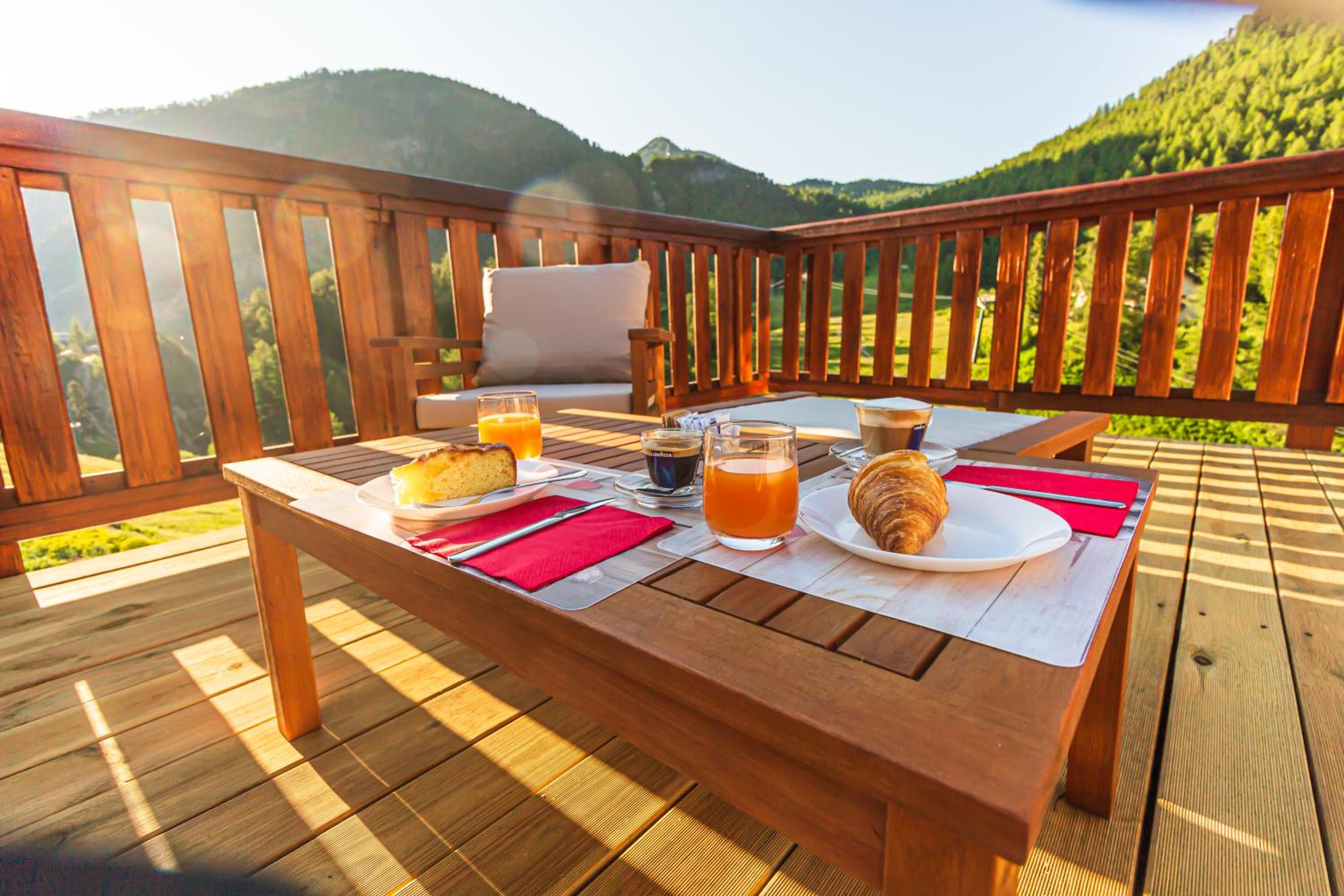 Enjoy stunning mountain views from the comfort of your own private balcony in every room at Hotel Al Foiron.
