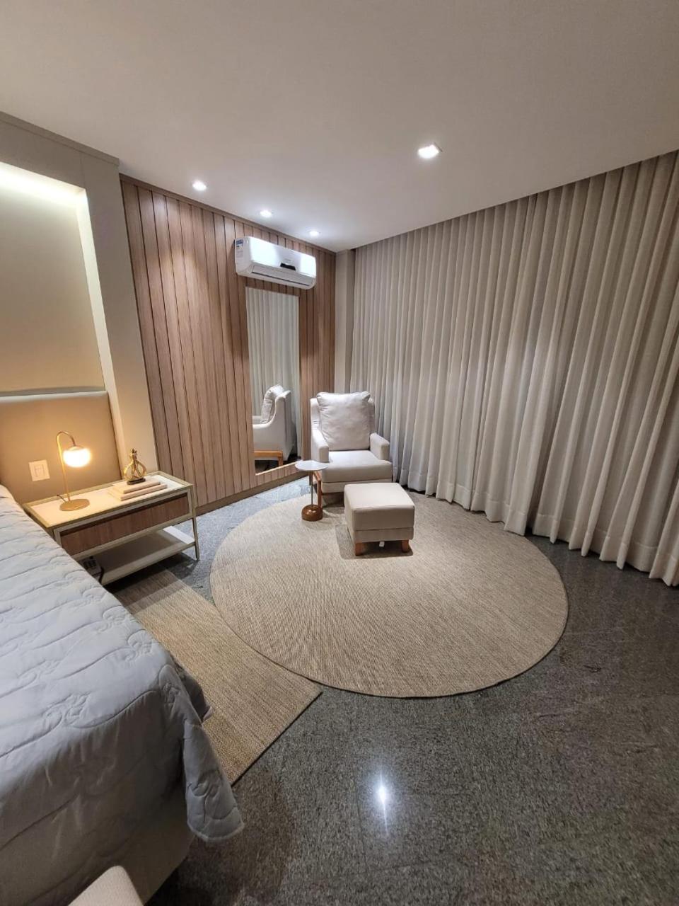 Falta um blackout no quarto. Só tem janela sem cortina. Quarto fica claro.