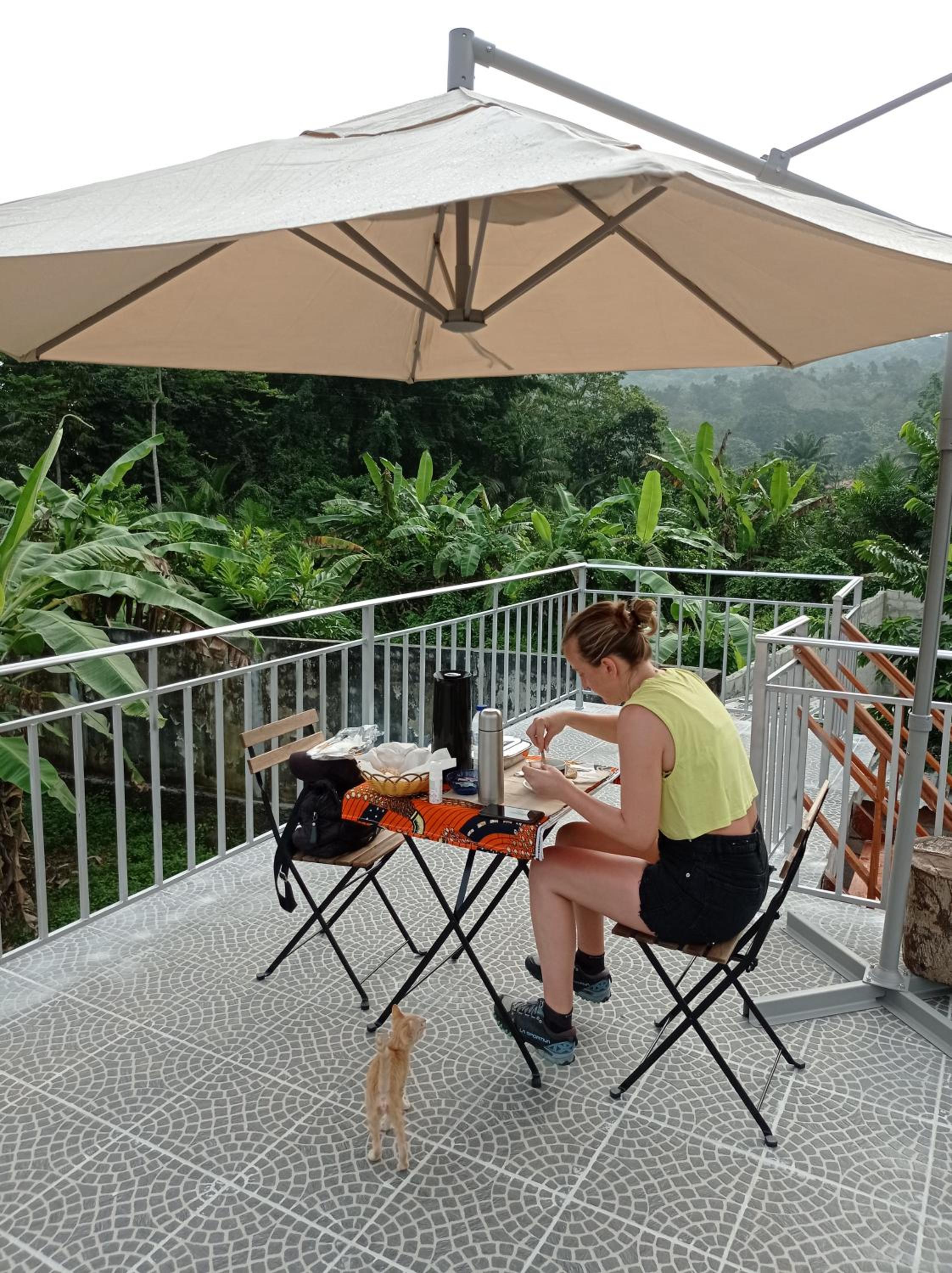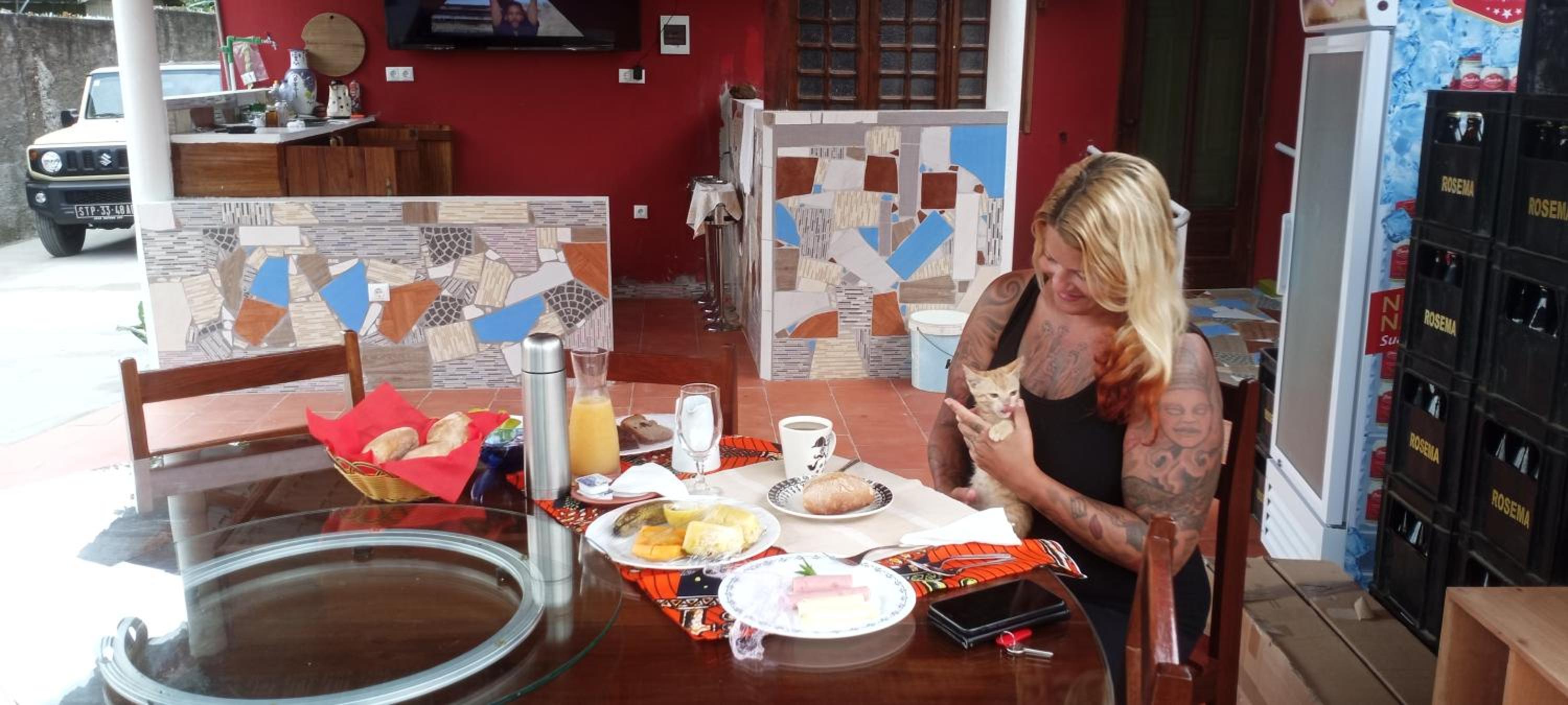 The owner tried to make us pay for a room upgrade, but when we refused, we realised they did not have the room we booked available. They gave us the upgrade for free. We paid 15 euros for a return transfer to the airport, but the owner squeezed us into a rental car with another couple, who were not aware of the situation. It was really awkward. We ended up not asking to be left at the airport, but we were not offered a discount. The wifi did not work for us. I think there are better options in Principe.