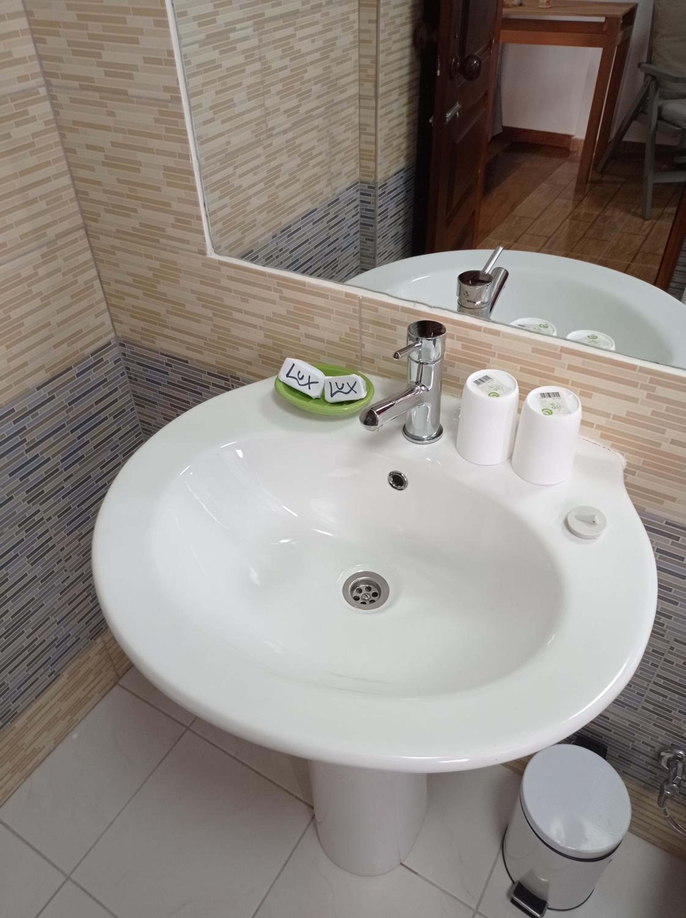 The rooms are very small, and when booking, it's not clear if they have a private bathroom. So, I asked the owner before arriving, and they confirmed that we had a private bathroom. Upon arriving, we found out that this was not true. The owner will try to sell you a € 10 breakfast per person per day, which is decent but not good enough for the price. The owner is very rude, and the rest of the staff are nice. The room window turned into a gas station, so the rooms smelled of gasoline all day and night long. Any additional activity is expensive. The hotel owner can arrange a guide, a car, or a boat, but you will pay a ridiculous price. Consider hiring a local guide and asking around for a tour, as it's often a more cost-effective option.