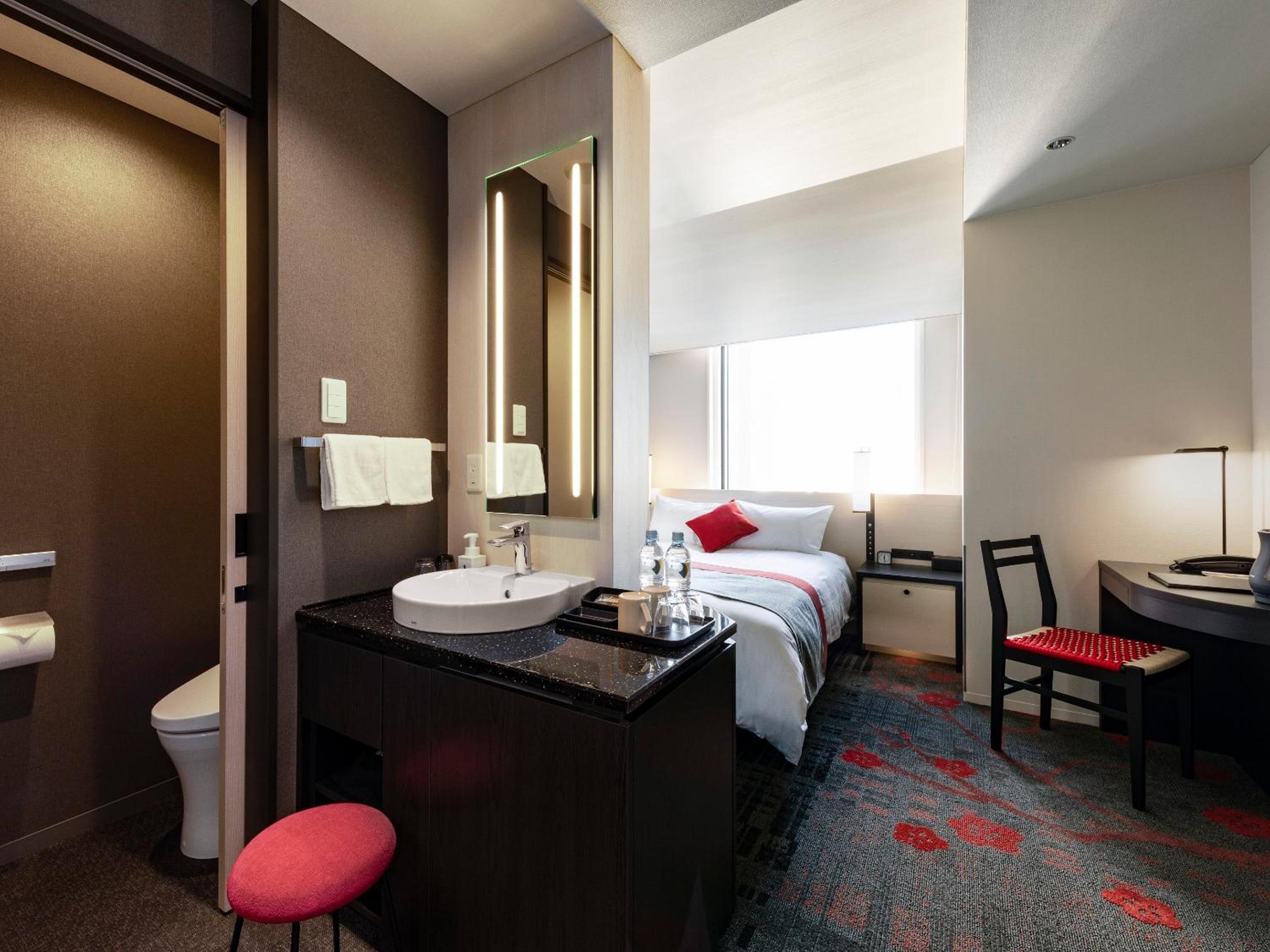 The best thing about this hotel is its location right near the Osaka Station. It’s perfect for a short stay or for daytrips. The view at night of the city was also nice. It’s comfortable and has what you need. The bathroom was modern by Japan standards. We had a twin room which is better than a double, so slept well here. The checkout was quick (just return your room key to a machine). I would stay here again.