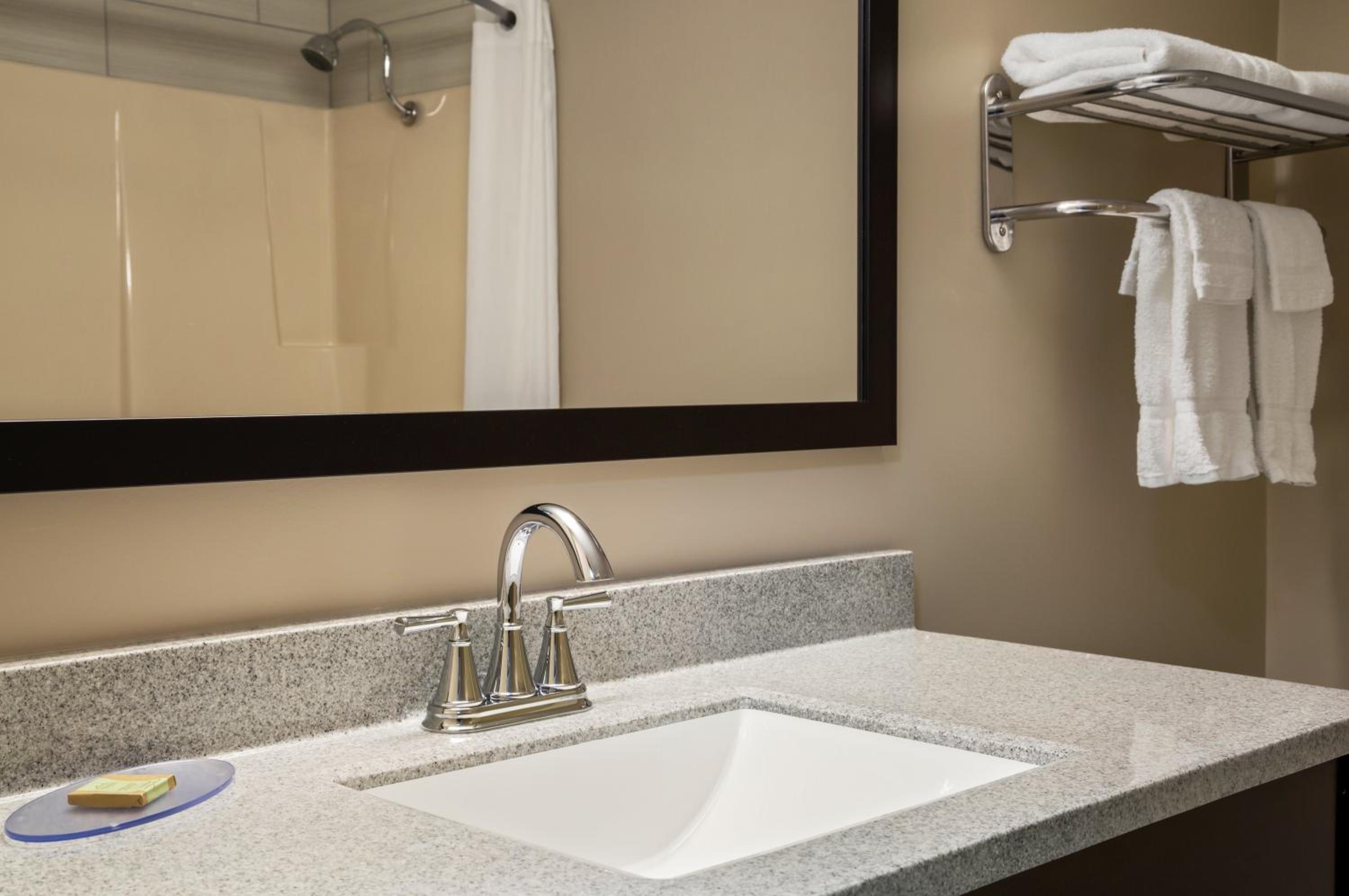 Convenient Amenities: Enjoy the convenience of a fitness centre, daily American breakfast to go, and in-room amenities like a refrigerator, microwave, and coffee maker.