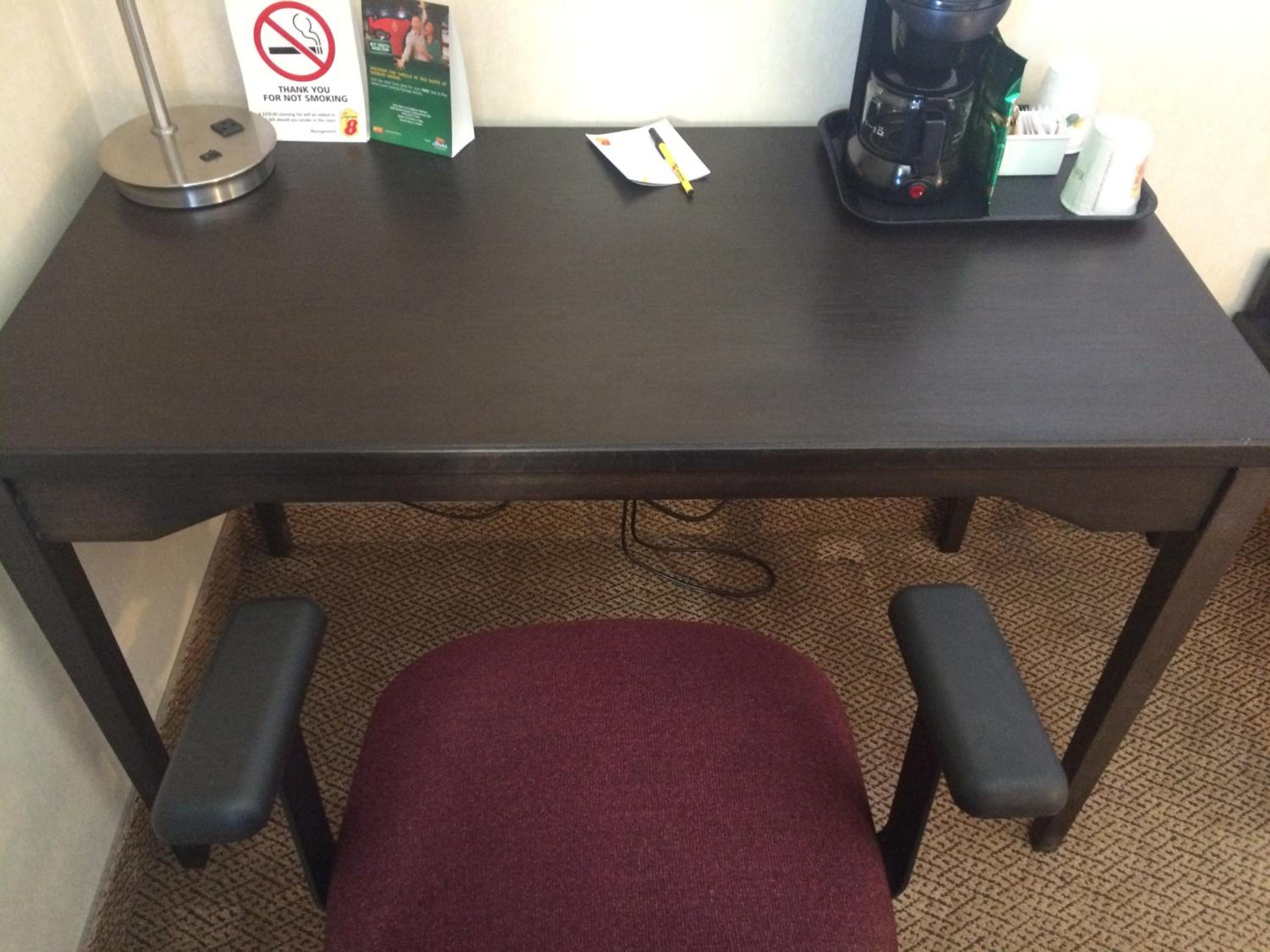 Ma chambre était pas propre . Il y avait de la poussiere sur toute les surfaces . Ainsi qui la balayeuse n’avais pas été passer . Des écailles de pistaches , des longs cheveux aux sols . Un bas a terre a coter de la table de cheveux . Le micro onde etait sale et puait . J’ai pas oser me laver . Meme mon lit j’ai dormie vraiment toute habiller car j’avais pas trop confiance et il fesait froid . Ha et ca sentais la cigarette . J’ai avertie le jeune homme a l’acceuil . Il a été super gentil avec moi il a prit tout sa en note. Mais pour vrai je voyage souvent toute seule de long roadtrip. Je me prend des hotels sur booking a la dernière minute quand je suis trop fatiguer pour conduire plus loin . Et ces la premiere fois que j’ai une chambre pas propre .