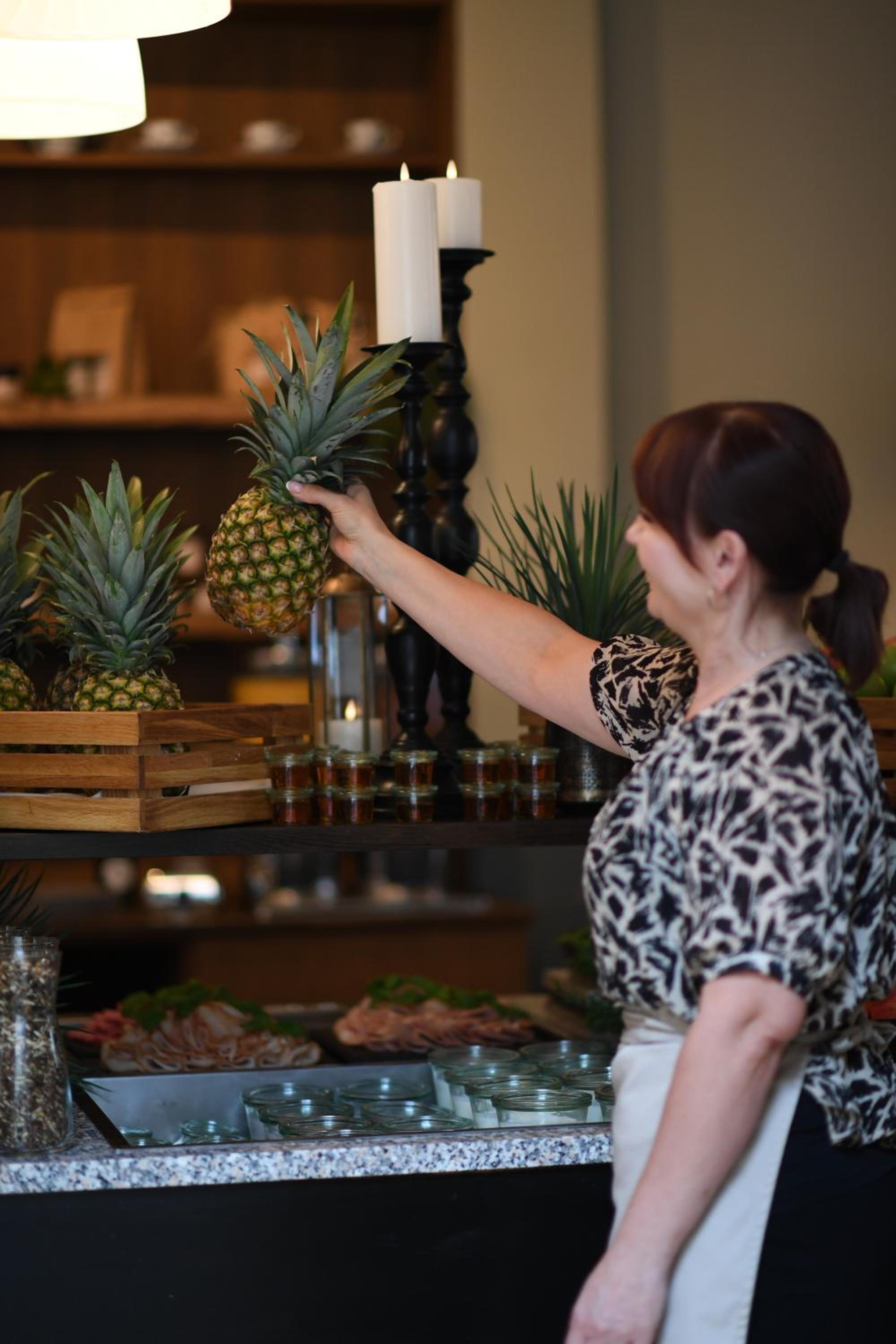 For mange mennesker/for lidt plads til morgenmaden. Morgenmaden var god, men der var lidt crowdet.