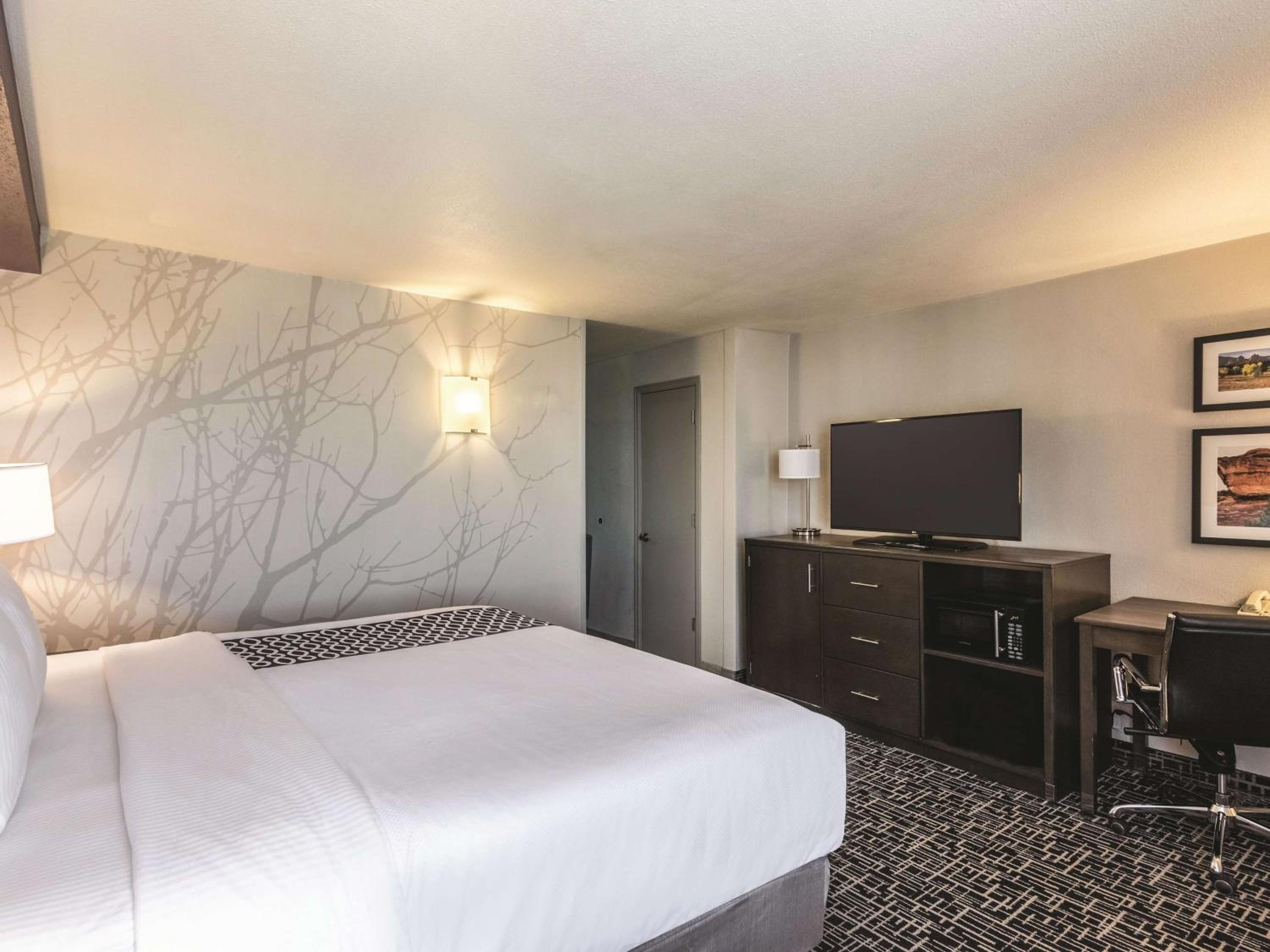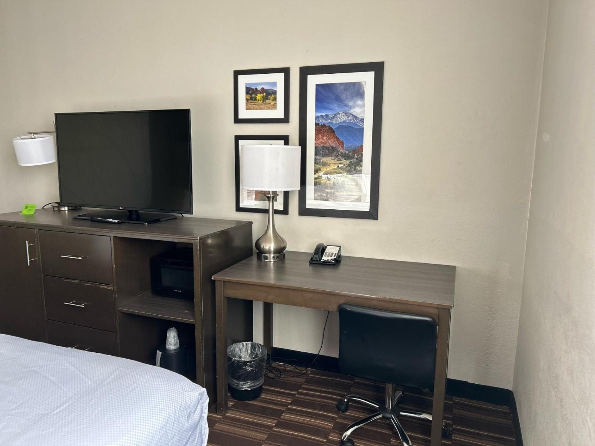 Clean room at a great location for the money. They have a pool and a 24 hour workout.